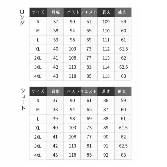 | サイズについての説明 | シックなデザインの長袖ワンピース ショート丈とロング丈からお選びいただけます。 【サイズについて】 画像をご参照ください。 【素材について】 ポリエステル |