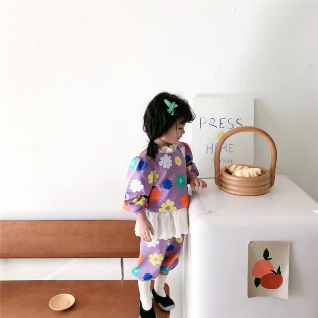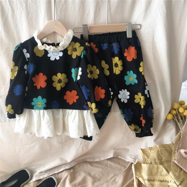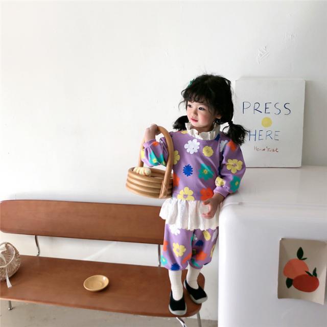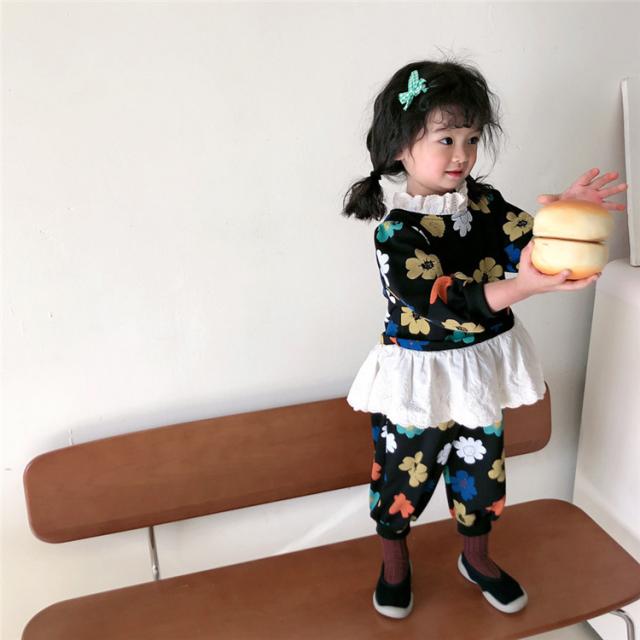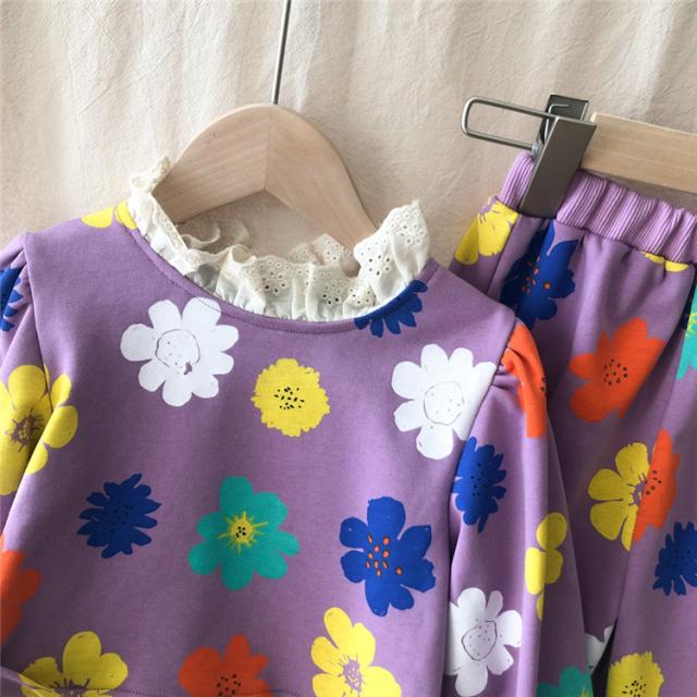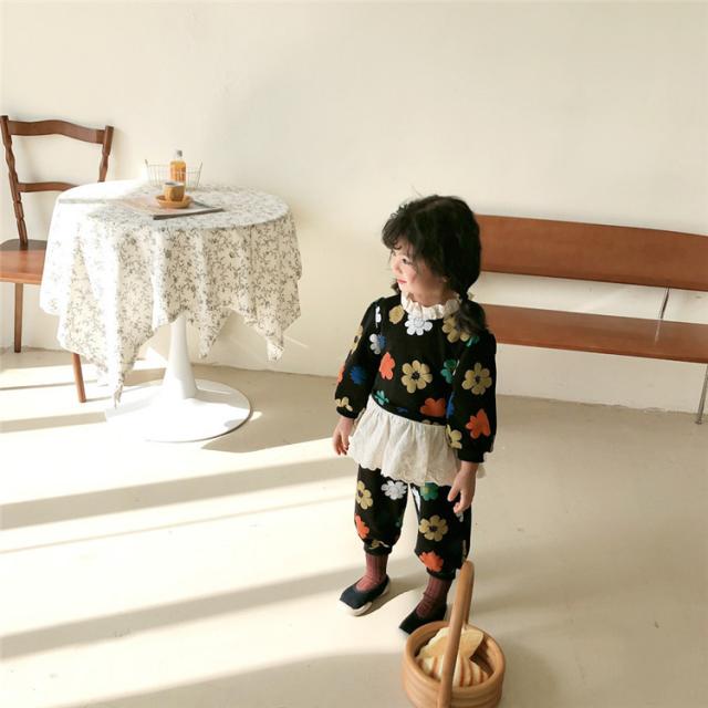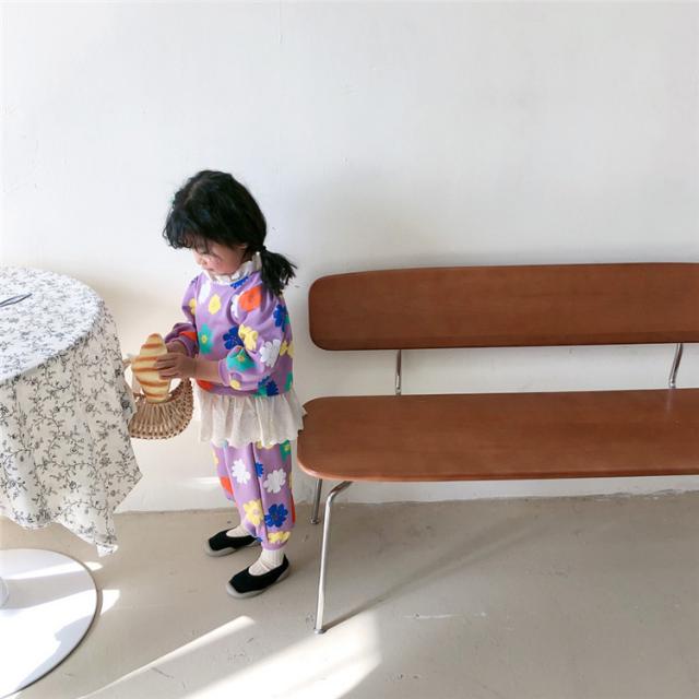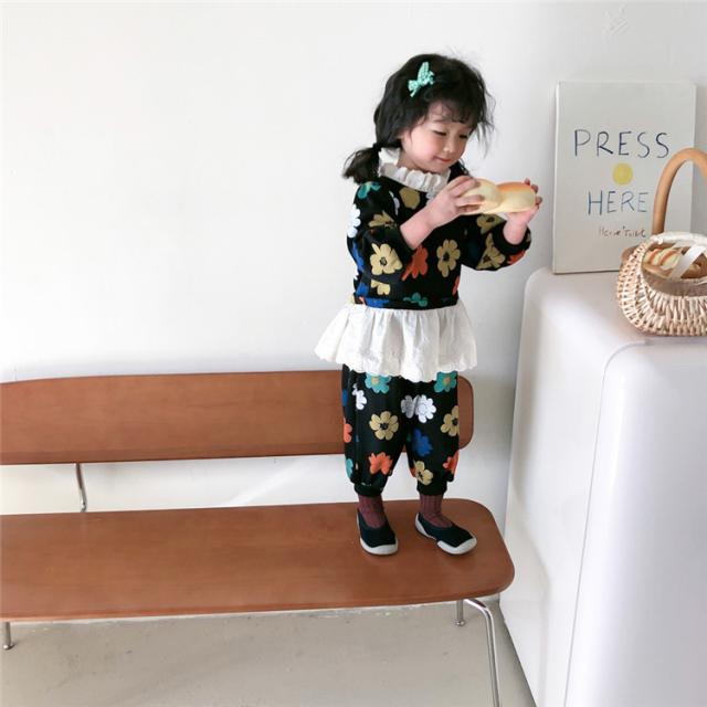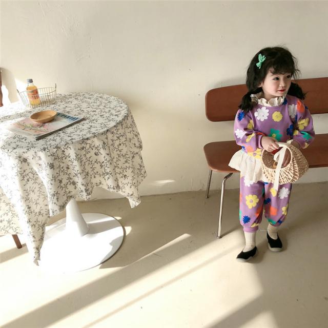 子供服 セットアップ キッズ 女の子 長袖 春服 トップス ブラウス Tシャツ 花柄 ロングパンツ ジャージ 長ズボン 韓国子供服 ベビー服 おしゃれ 可愛い 新品 90
