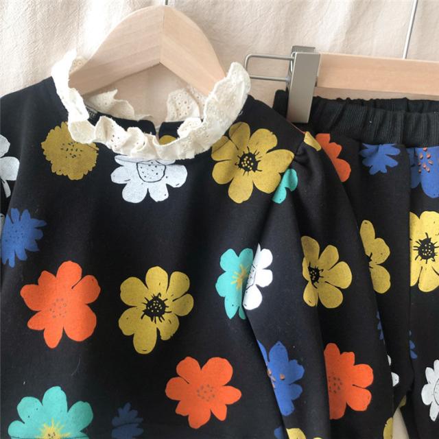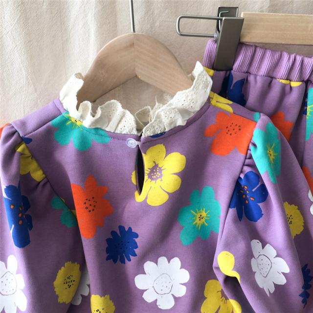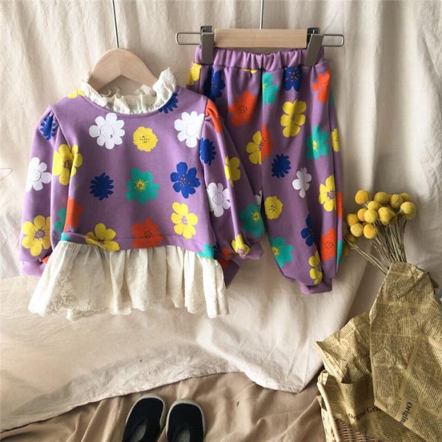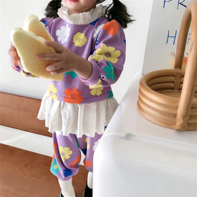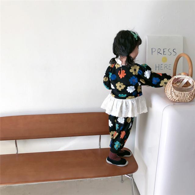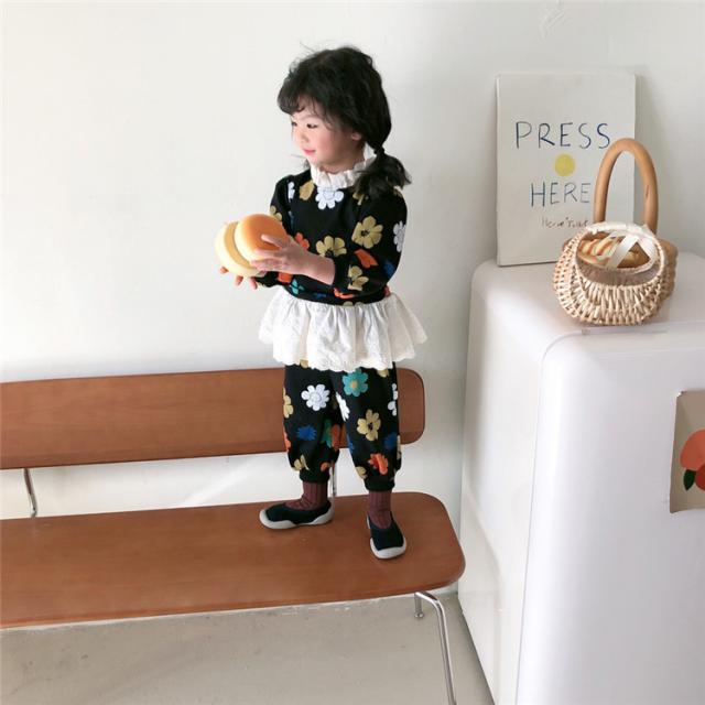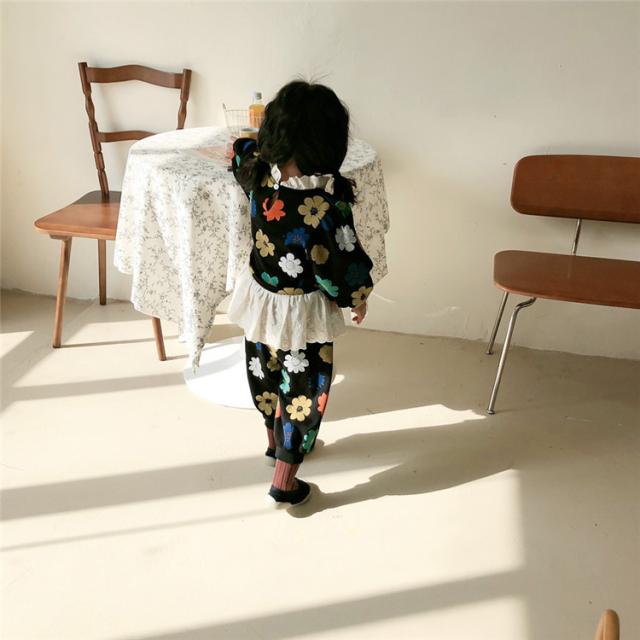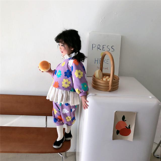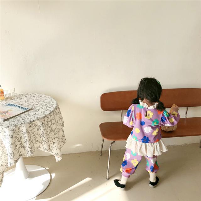 子供服 セットアップ キッズ 女の子 長袖 春服 トップス ブラウス Tシャツ 花柄 ロングパンツ ジャージ 長ズボン 韓国子供服 ベビー服 おしゃれ 可愛い 新品 90