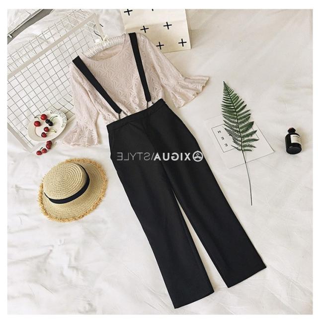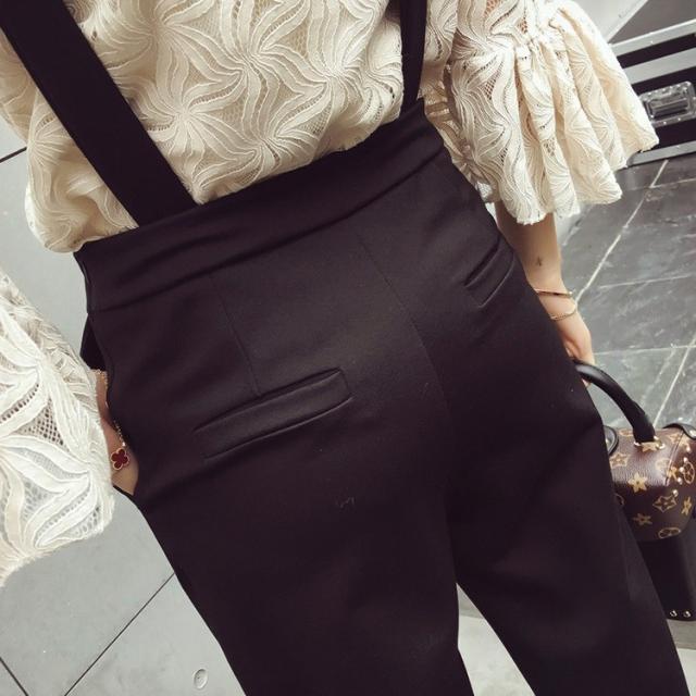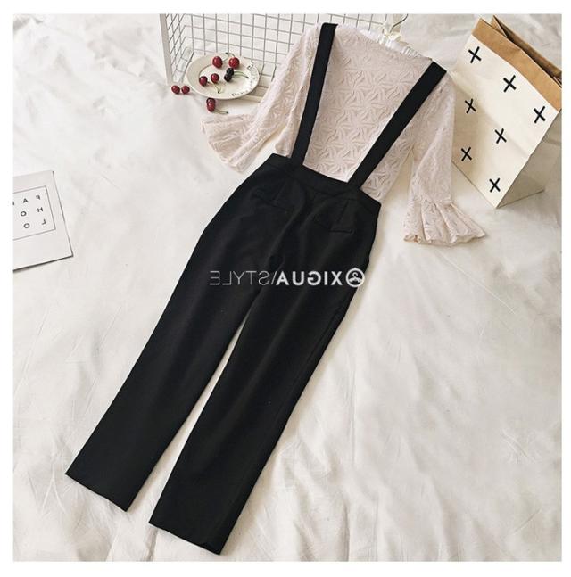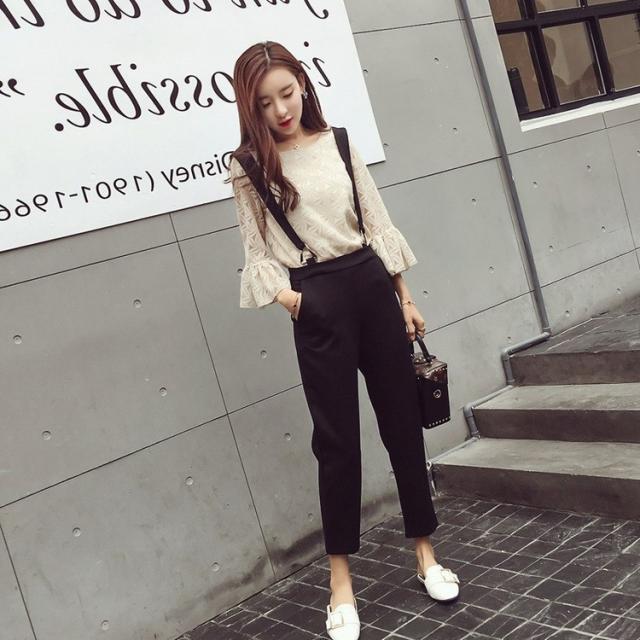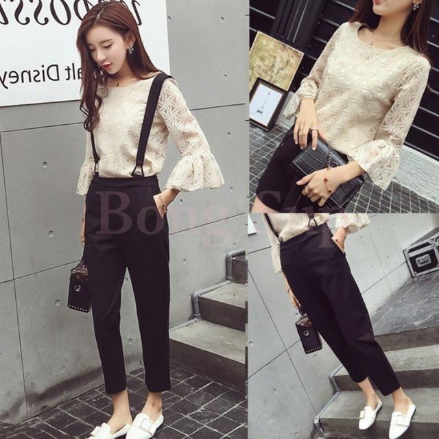 セットアップ レディース 40代 春秋 セットアップ 長袖 総レース トップス フレア きれいめ サスペンダー 九分丈パンツ 2点セット ボトムス 通勤 着痩せ