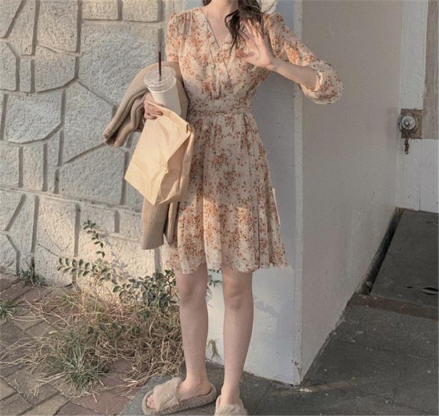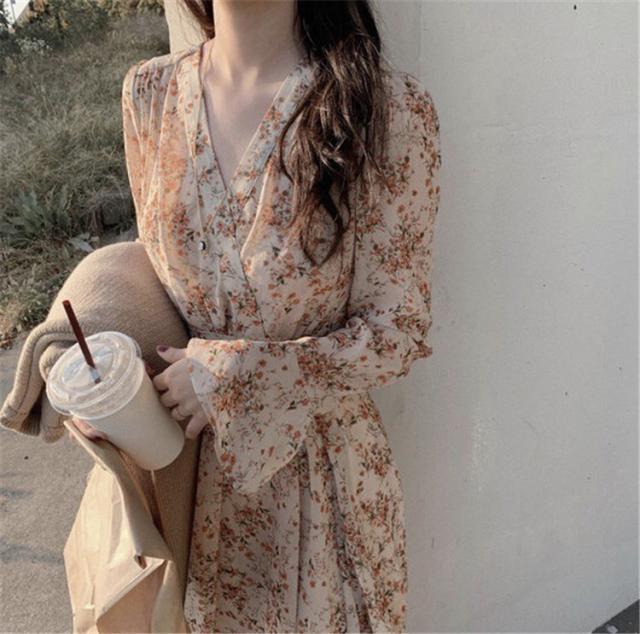 ワンピース レディース 40代 20代 きれいめ 春服 長袖 シフォンワンピース ロング丈 花柄 Vネック Aライン ドレス 大きいサイズ おしゃれ 着痩せ 上品 通勤 新品