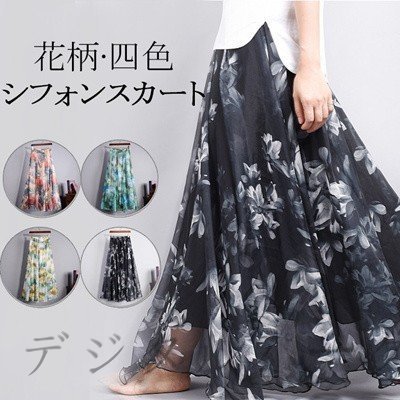 シフォンスカート ロング マキシ スカート 春夏 スカート 花柄 マキシスカート レディーススカート ロングスカート フレアスカート ロングマキシ
