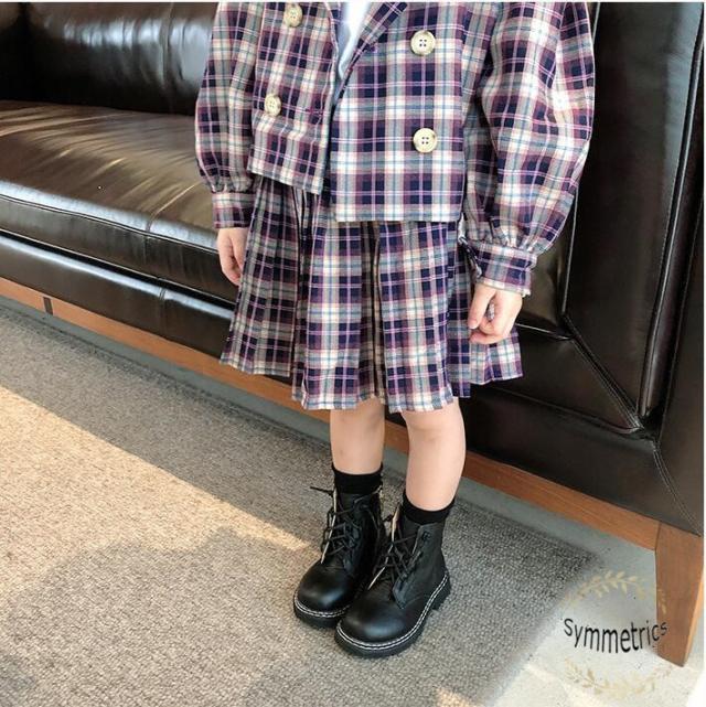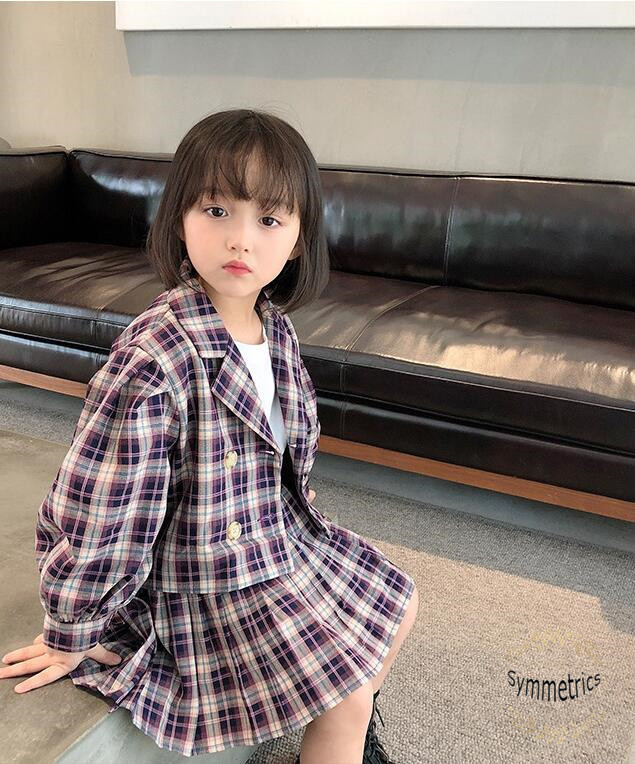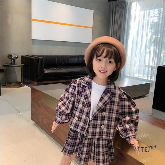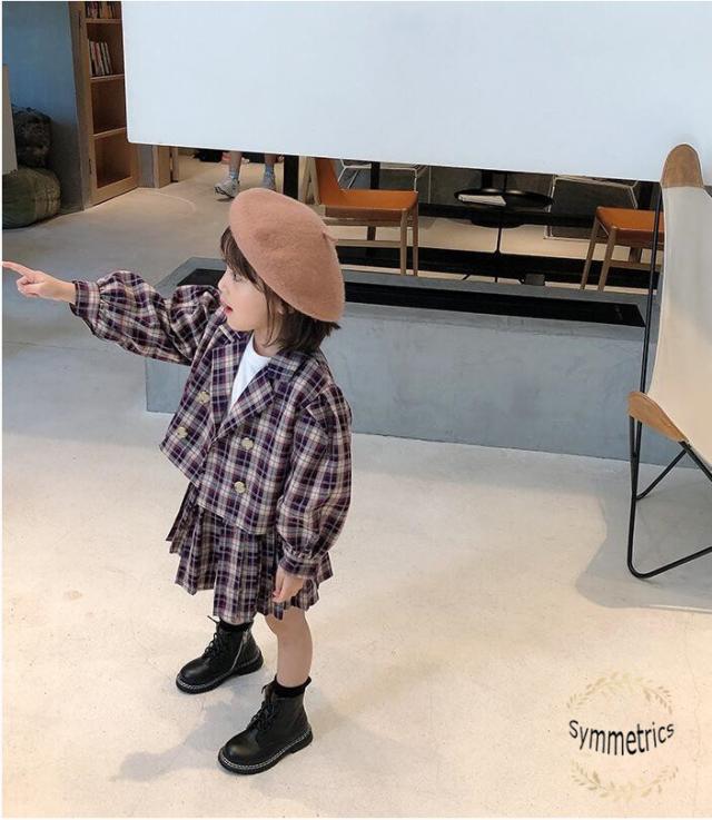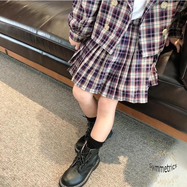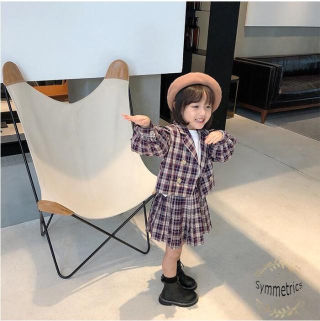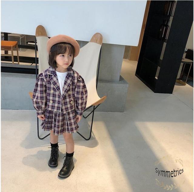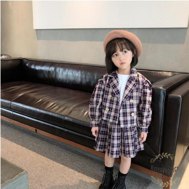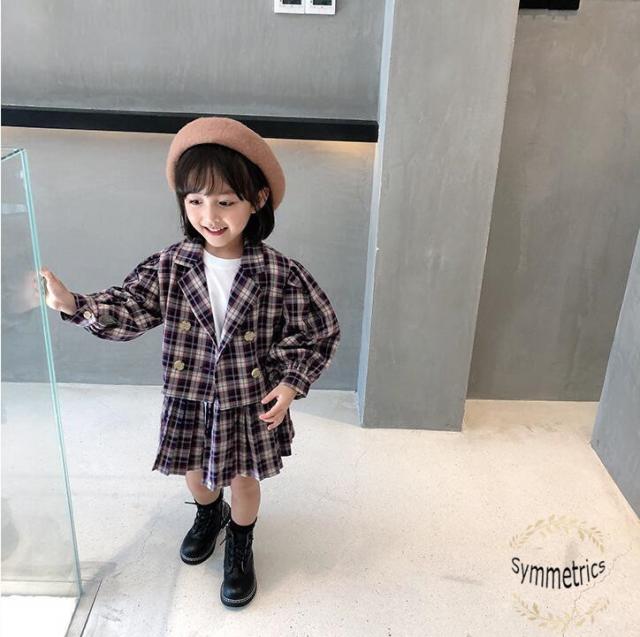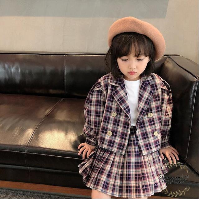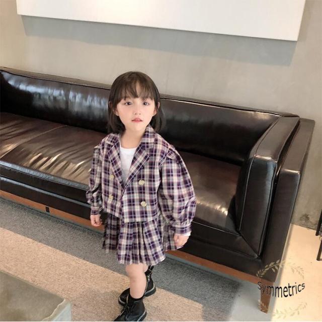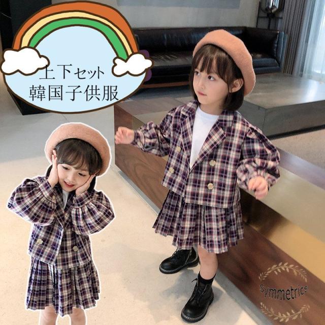 韓国子供服 スーツ 女の子 卒業式 入学式 フォーマル チェック柄 ジャケット+スカート 子供服 セットアップ 長袖 スカートスーツ 90 100 110 120 130 140cm