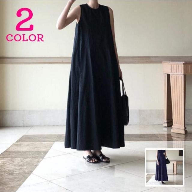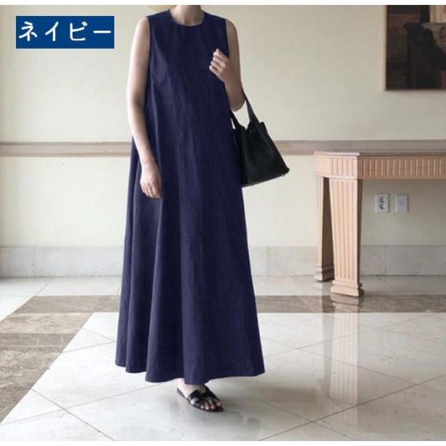 ワンピース レディース Aライン マキシ丈 ノースリーブ クルーネック シンプル 無地 上品 かわいい おしゃれ 大人女子 婦人