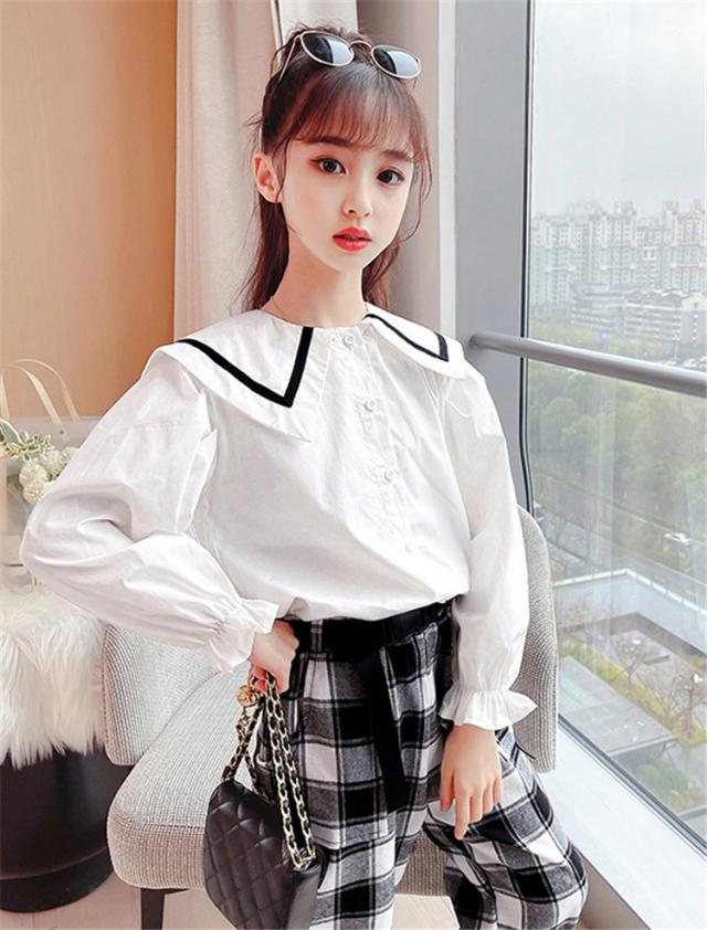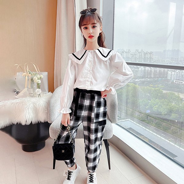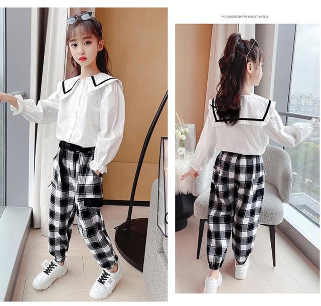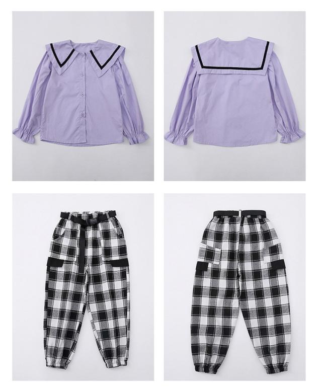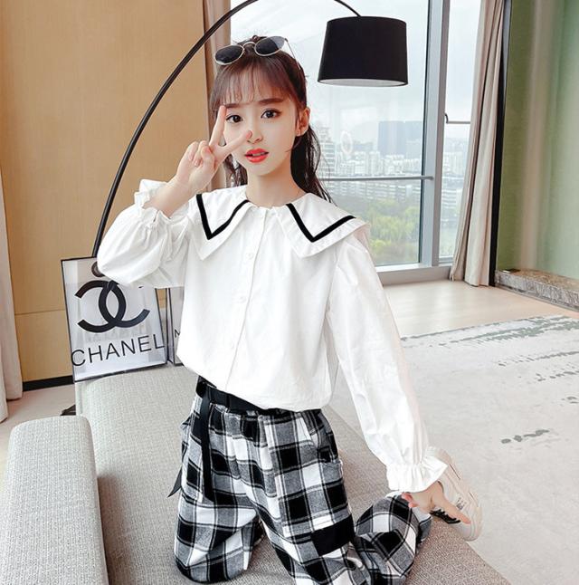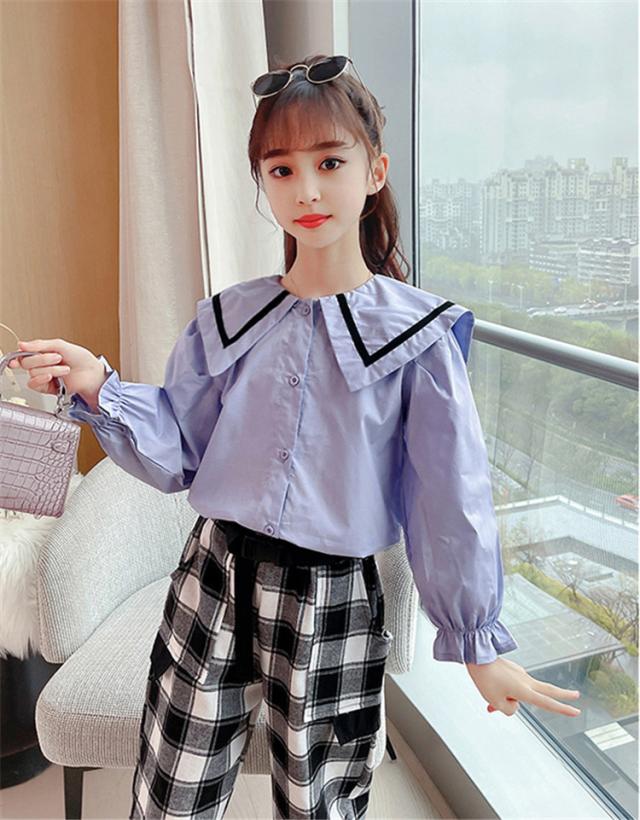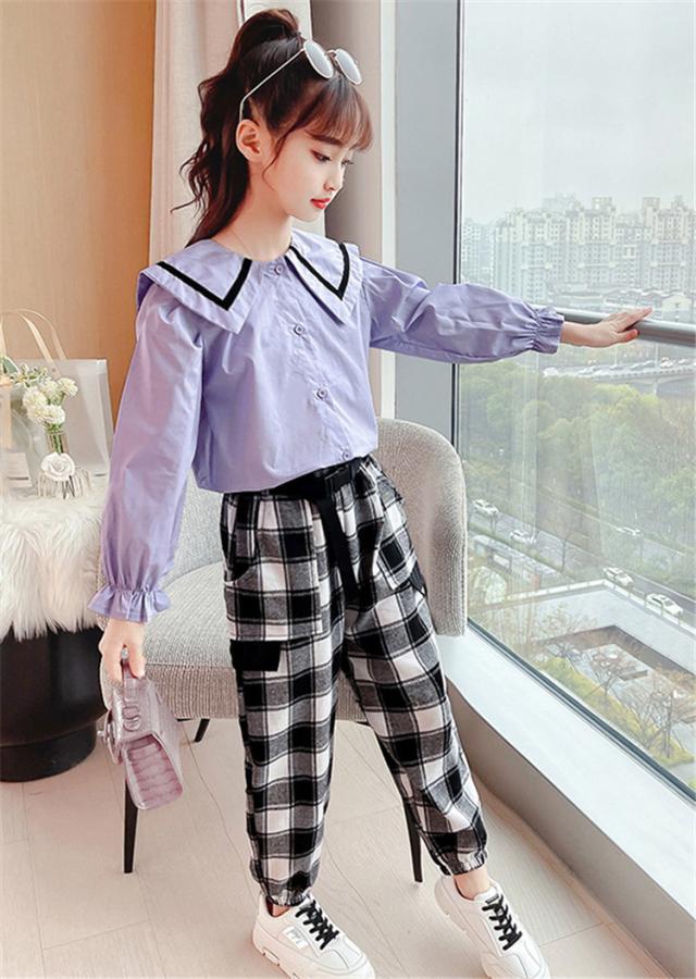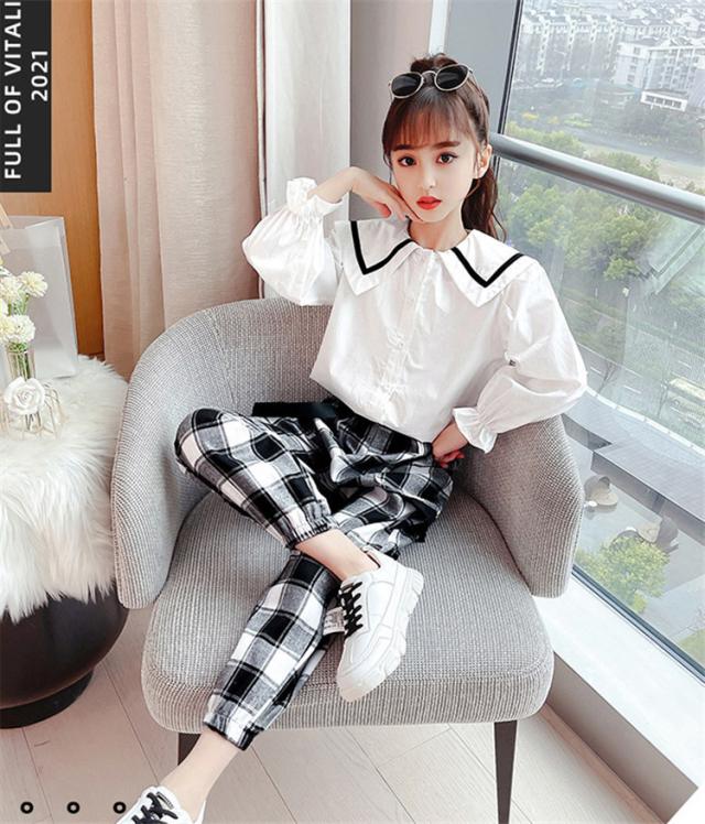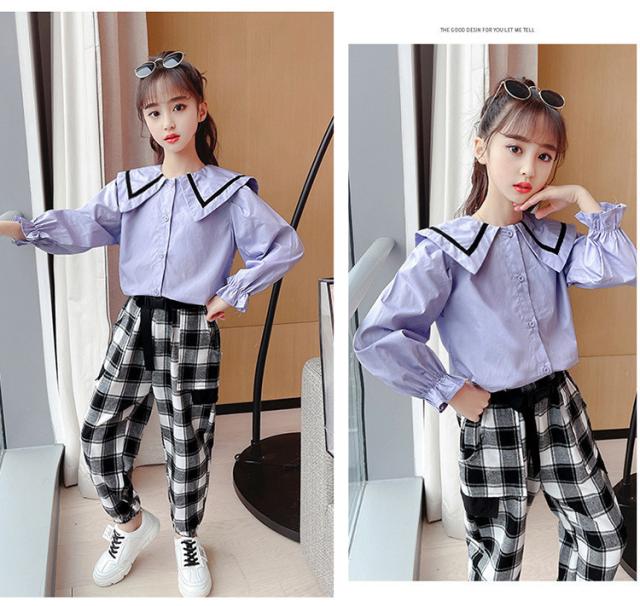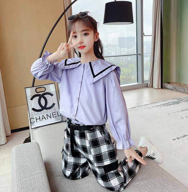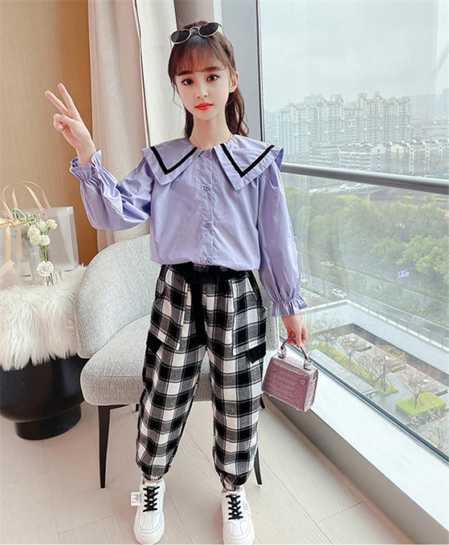 子供服 セットアップ キッズ 女の子 長袖 春服 上下セット トップス ブラウス シャツ ロングパンツ 長ズボン チェック柄 韓国子供服 ジュニア おしゃれ 可愛い
