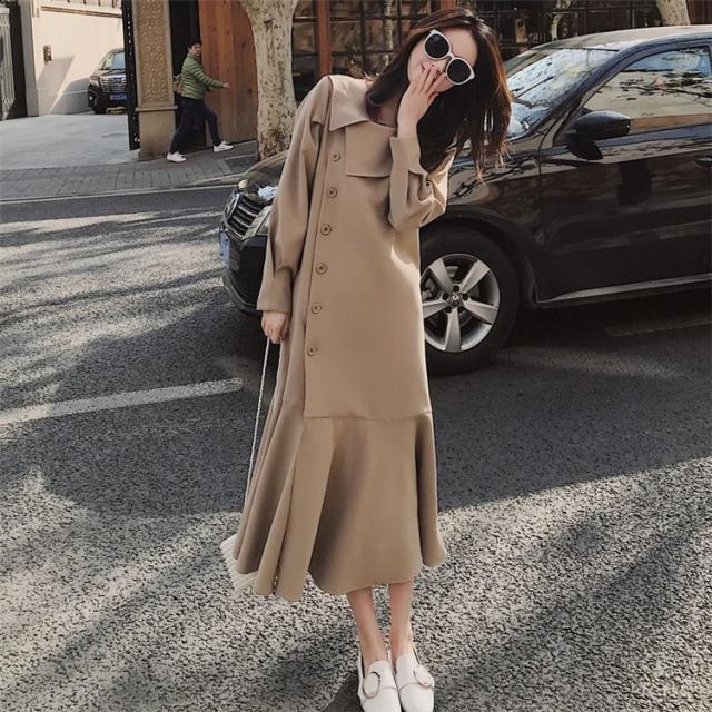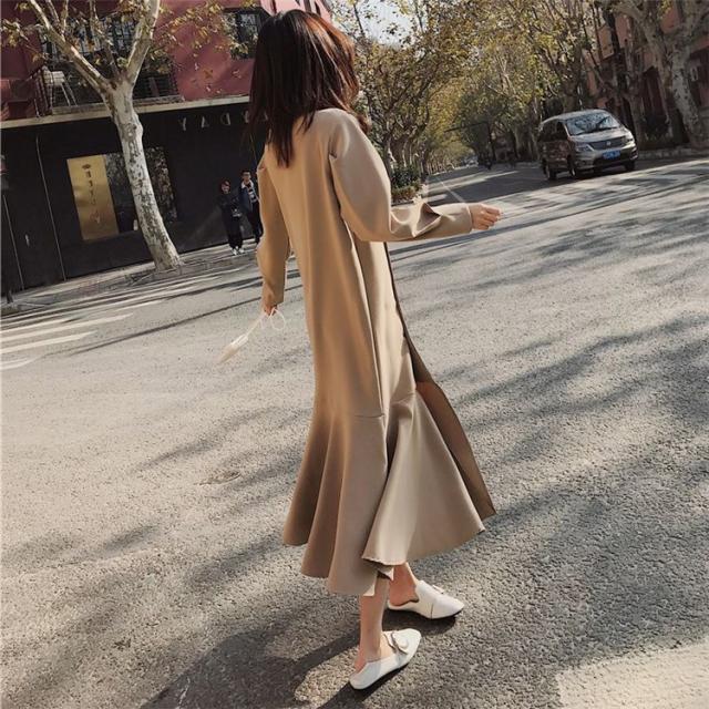 ワンピースドレス レディース 春秋 マキシ丈 長袖 マーメイドスカート ロング丈ワンピース きれいめ 韓国風 結婚式 ドレス 着痩せ オシャレ リネン