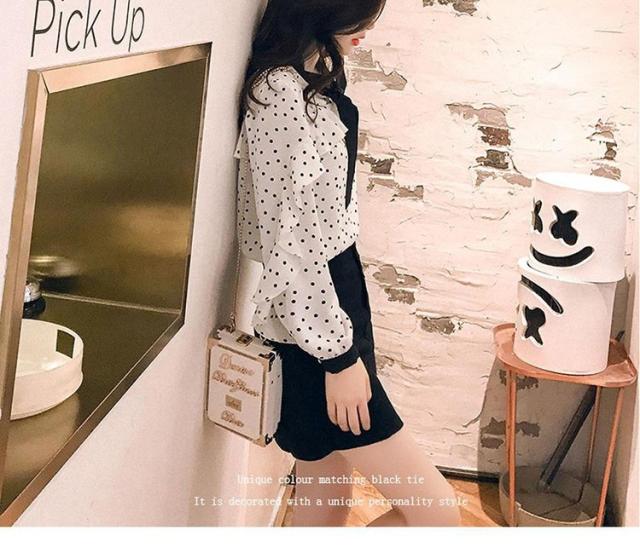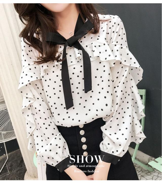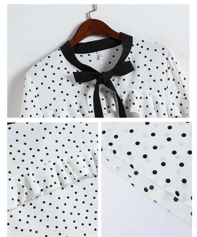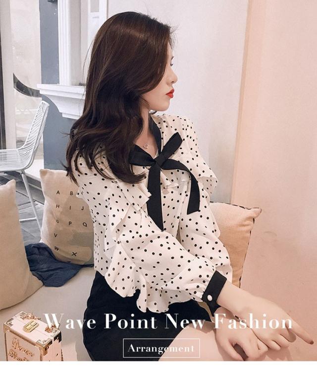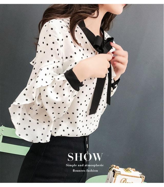 ブラウス レディース 春夏 長袖ブラウス ドット柄トップス シフォンブラウス リボン おしゃれ フリル 大きいサイズ 韓国風 大人 通勤 40代 着痩せ