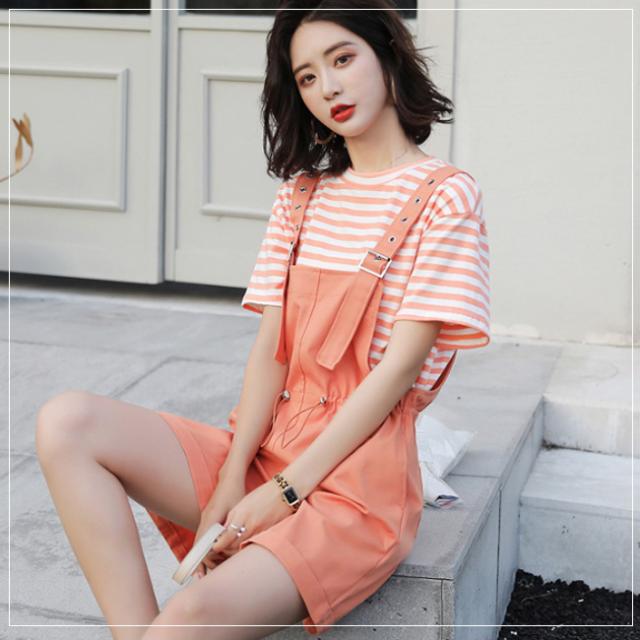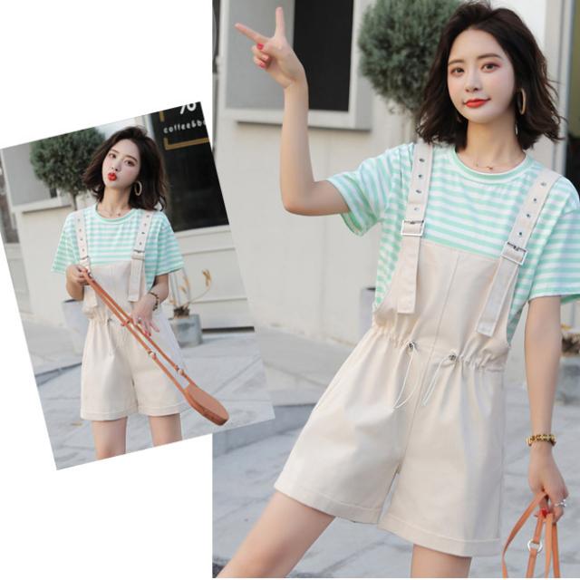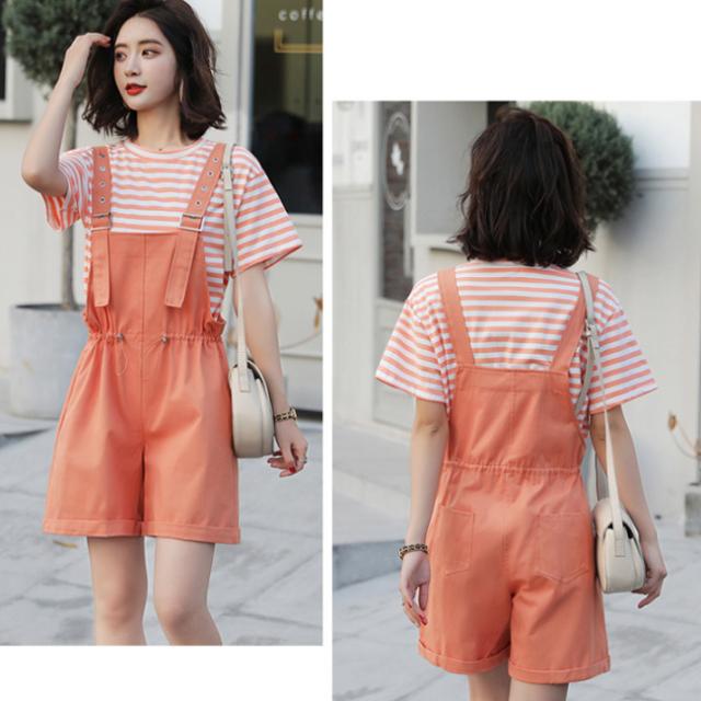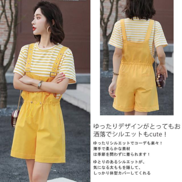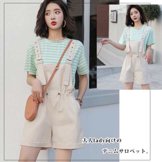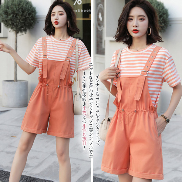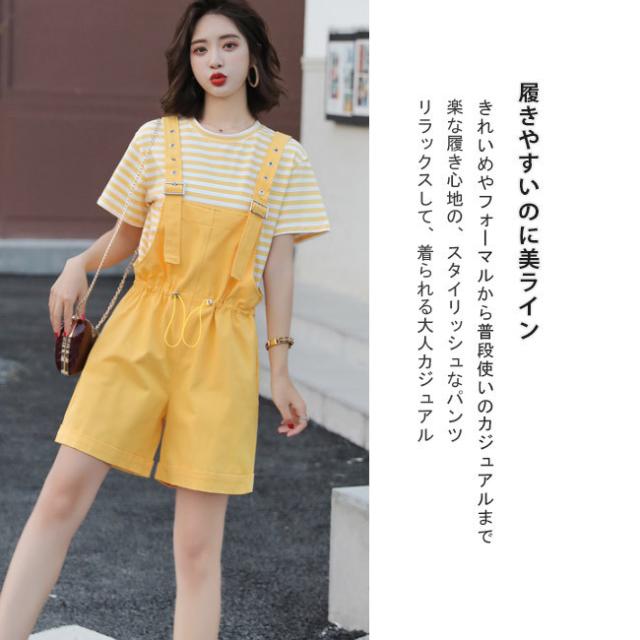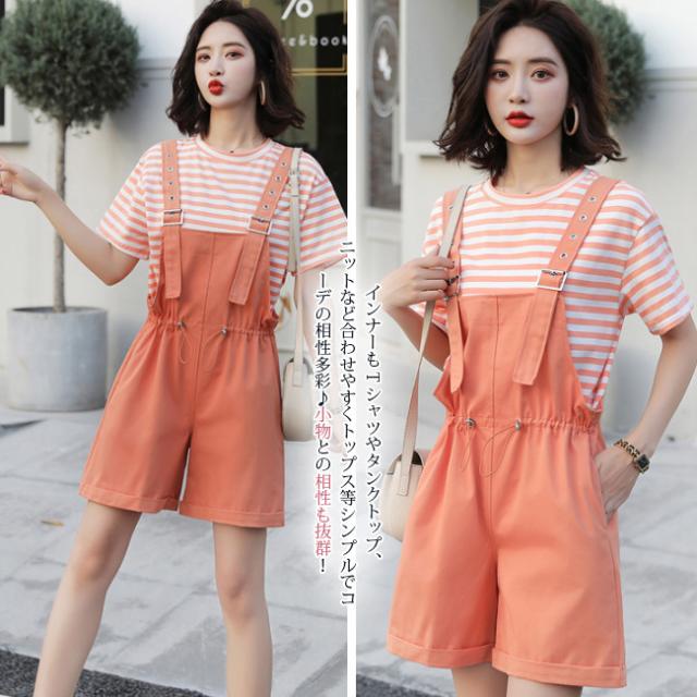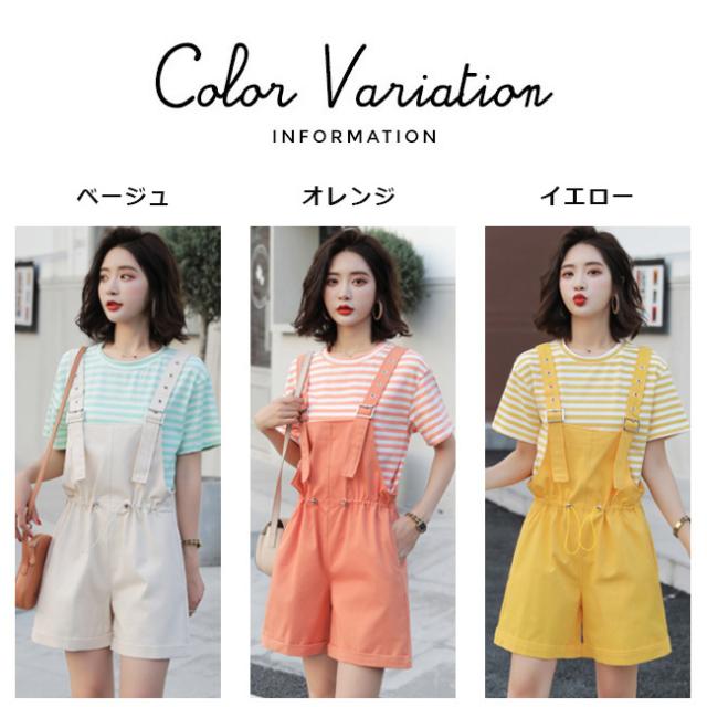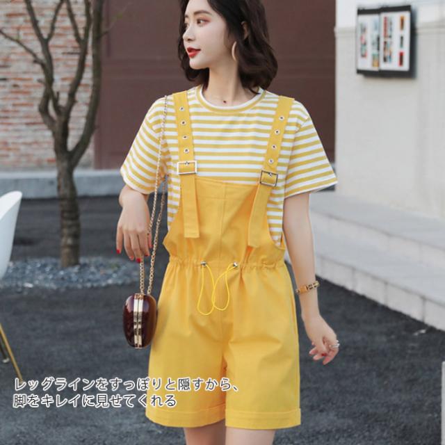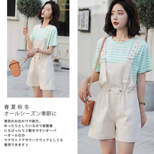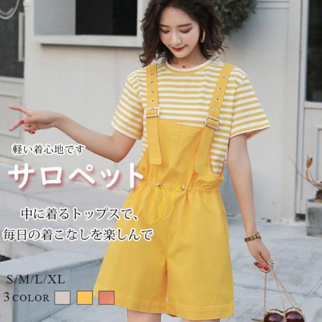 サロペット レディース ゆったり オーバーオール カジュアル 無地 ポケット付き ゴムウェスト 調整可 オールインワン シンプル ベージュ ショート丈