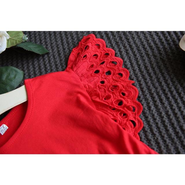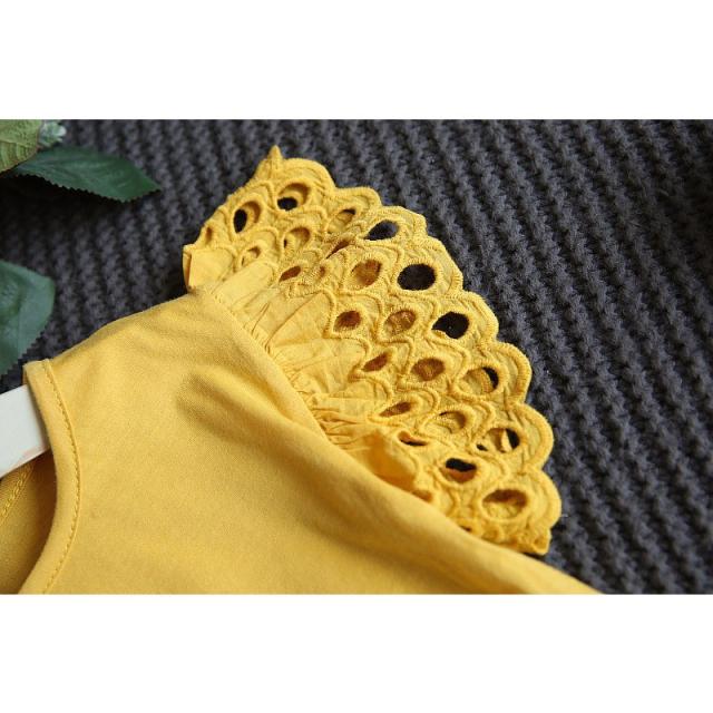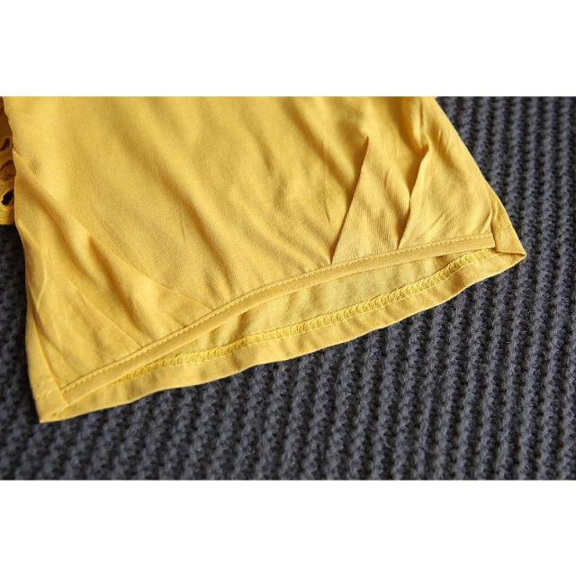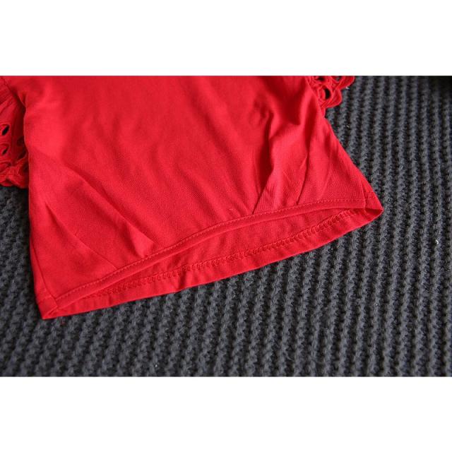 | サイズについての説明 | スカラップレースの袖がかわいい子供用上下2点セット。 トップスはビビッドなイエローとレッドの2色♪ ボトムスはホワイトのショートパンツで合わせやすくて◎ 【サイズについて】 画像をご参照ください。 【素材について】 綿混 【補足説明】 商品の性質上、手洗いでのお洗濯をお勧めしております。 |