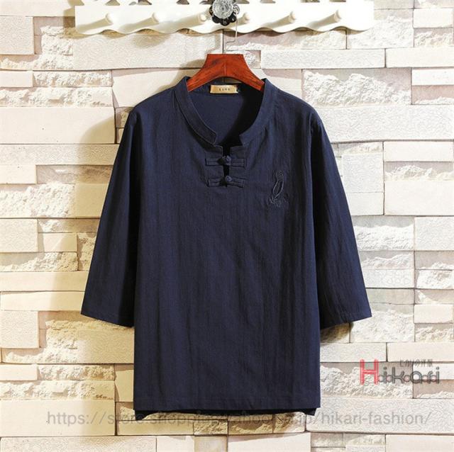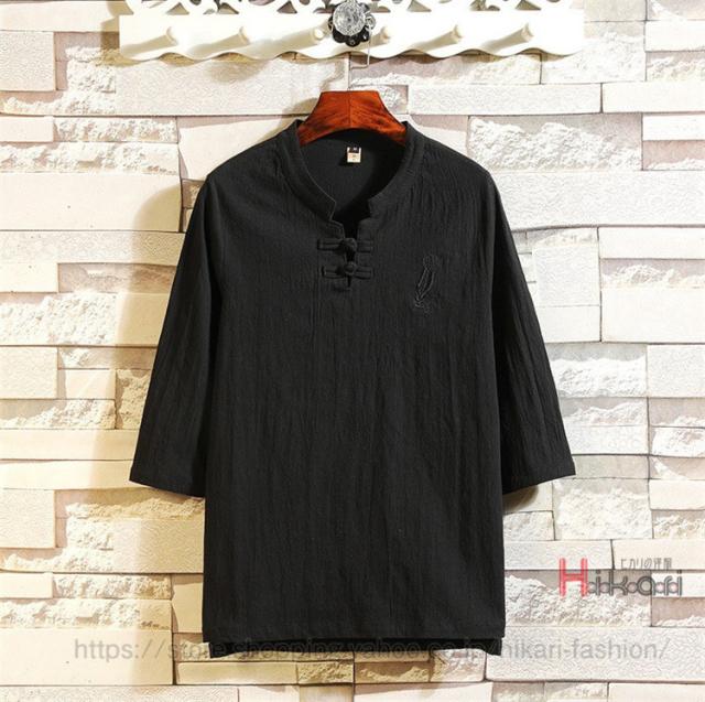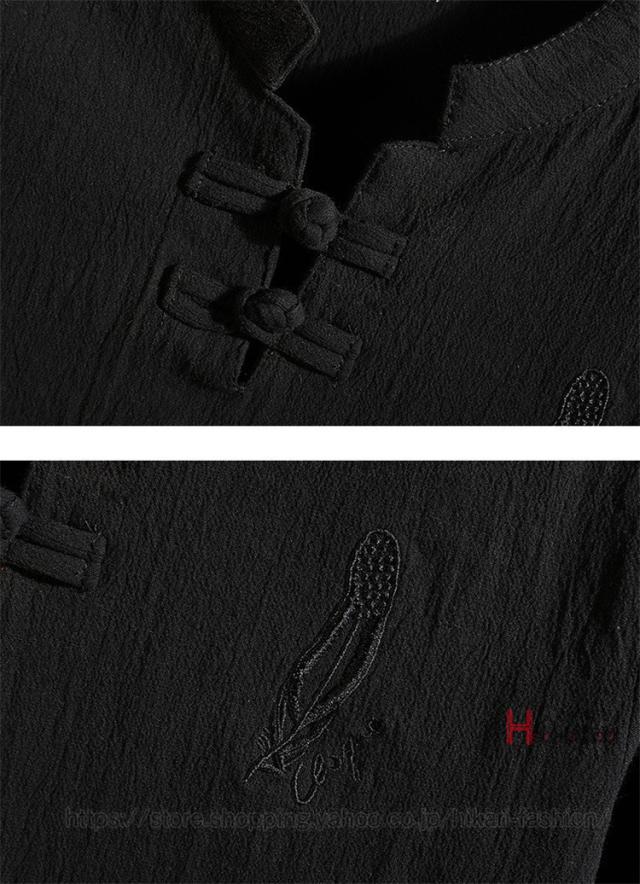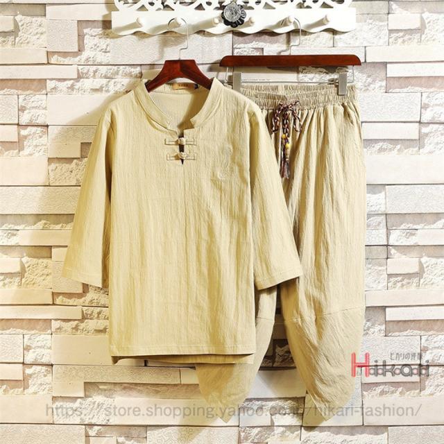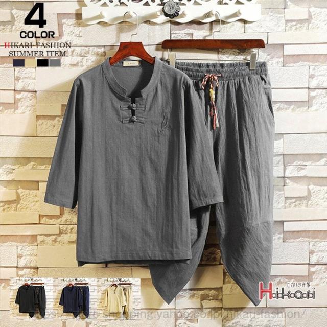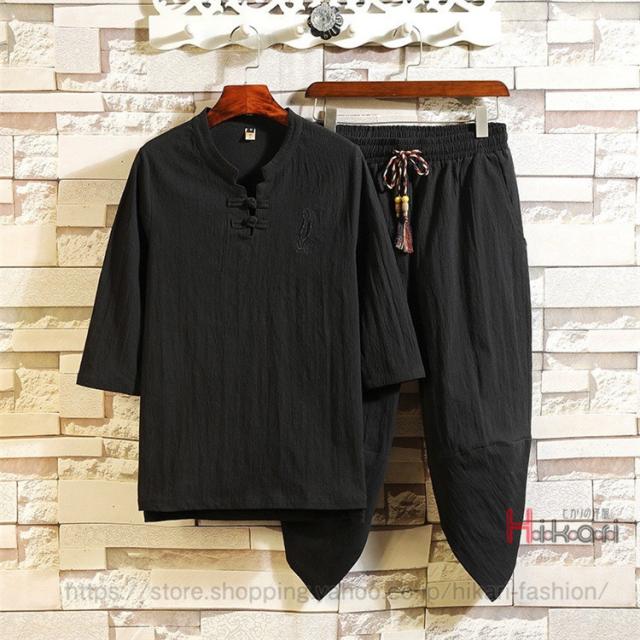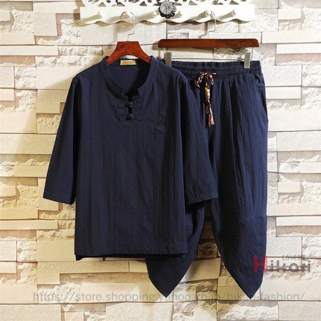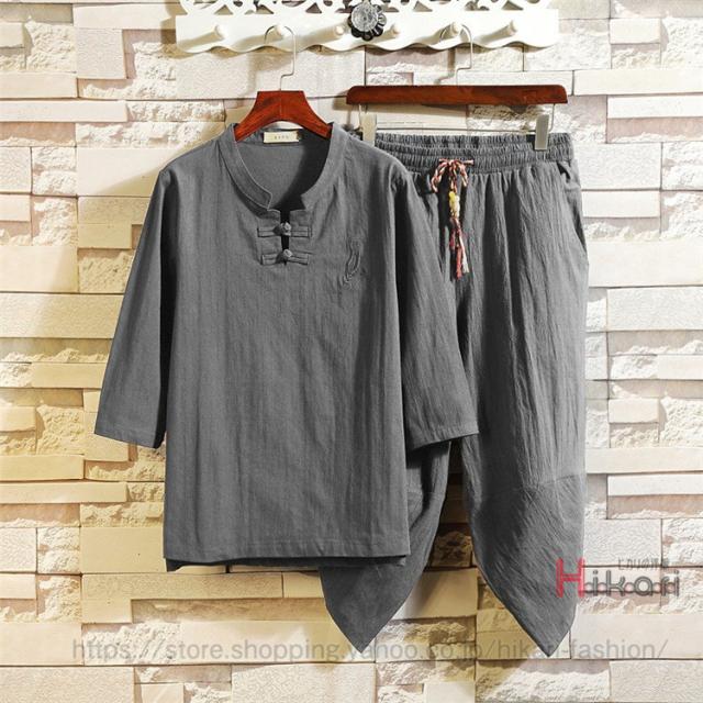 チャイナ服 メンズ 上下セット 七分袖 Tシャツ セットアップ 夏物 クロップドパンツ 部屋着 普段着 チャイナ風