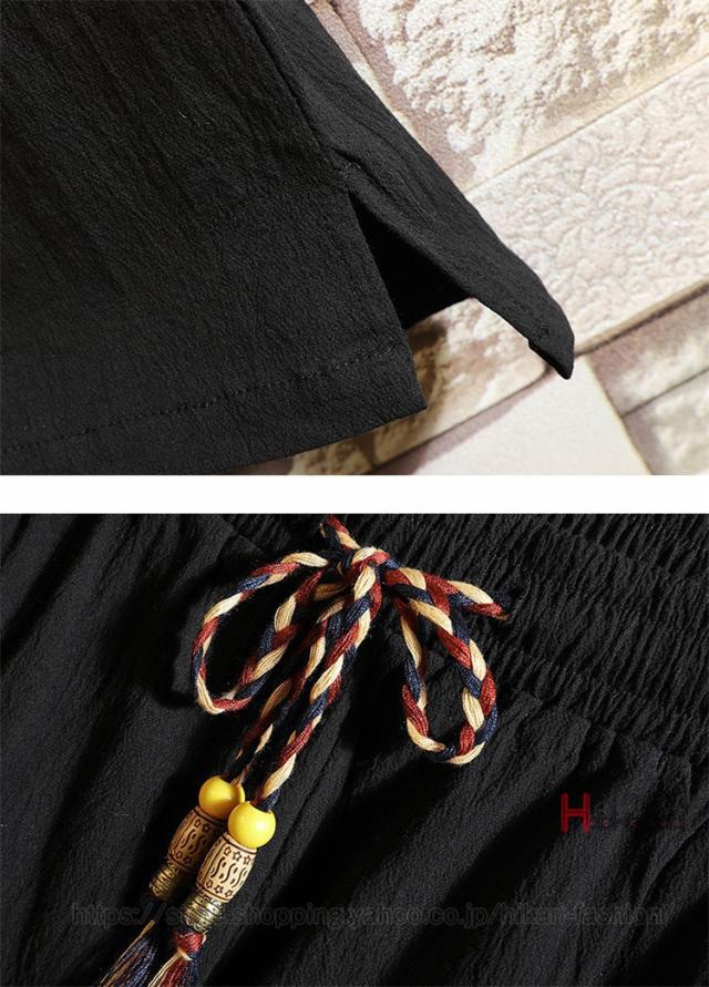 | サイズについての説明 | チャイナ服 メンズ 上下セット 七分袖 Tシャツ セットアップ 夏物 クロップドパンツ 部屋着 普段着 チャイナ風 ※記載サイズは平置き実寸になります。サイズ表記の数値に1-3cmの誤差が生じる場合がございます。 ※お使いの画面と実際のお色に若干の差がある場合がございます。 ※機械による生産過程におきまして、どうしても生地を織る際の糸の継ぎ目や多少のほつれ、または色ムラなどが生じている場合がございます。 ※ベルト、飾りやインナーなどは含みません。 |