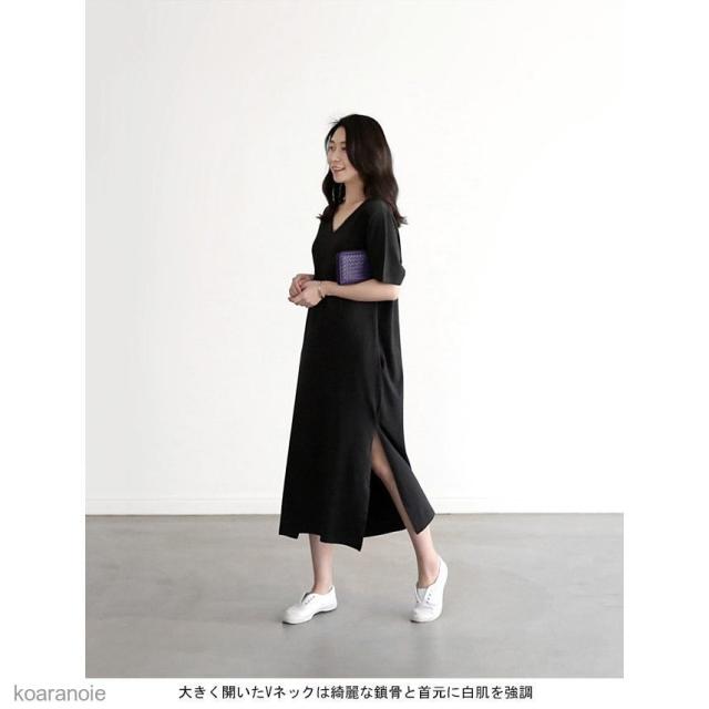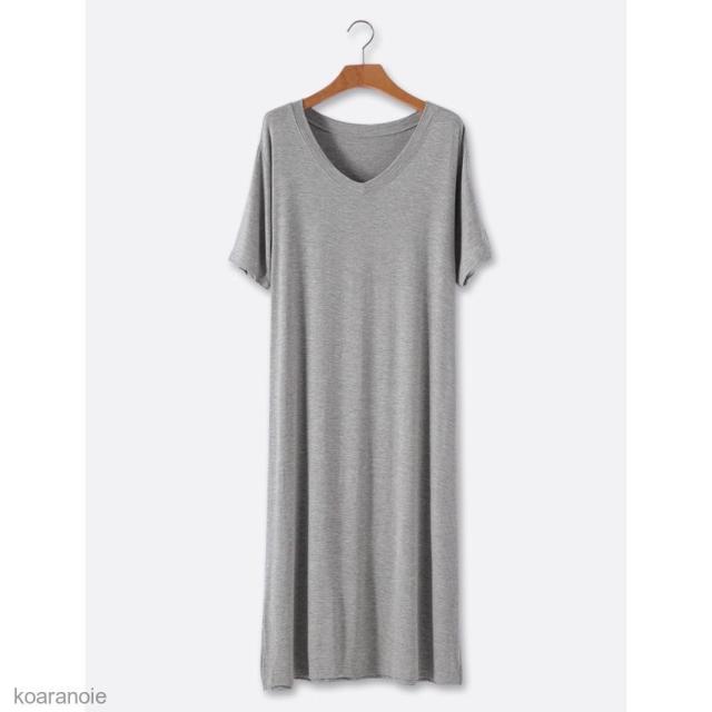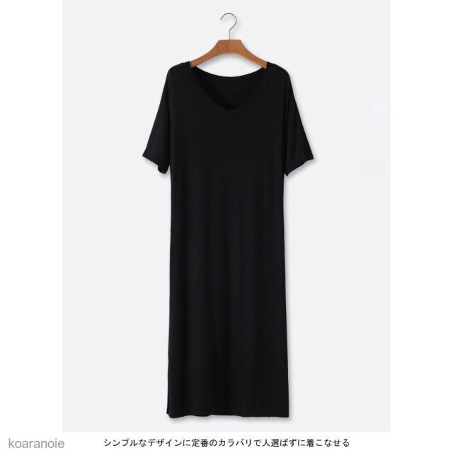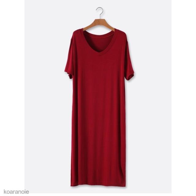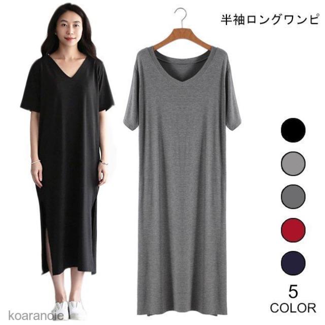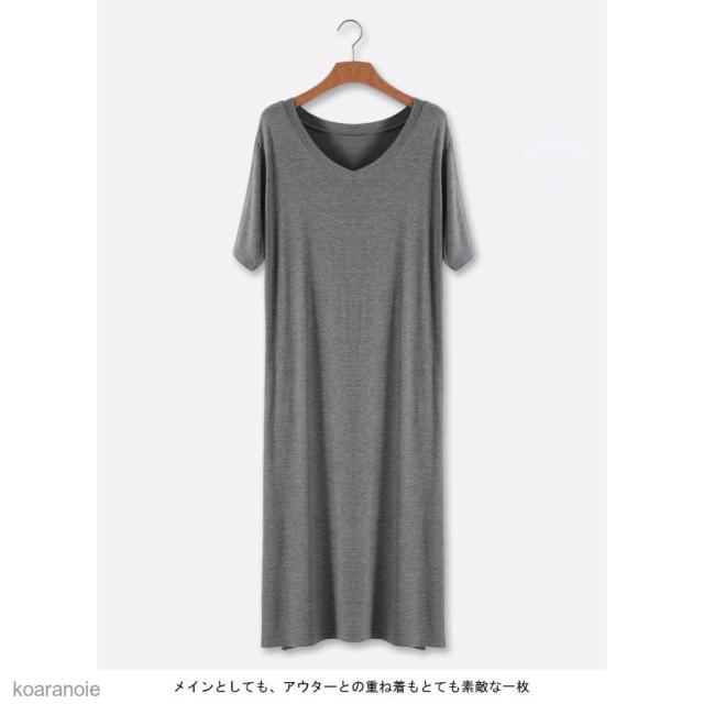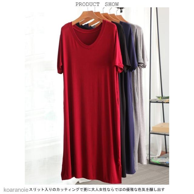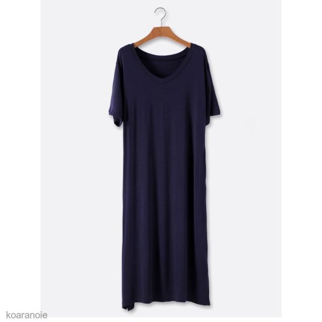 半袖ワンピース ロング 薄手 レディース ロングワンピ Vネック ワンピース ゆったり モダール 女性用 チュニック 半袖 夏 シンプル 無地