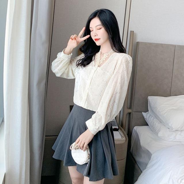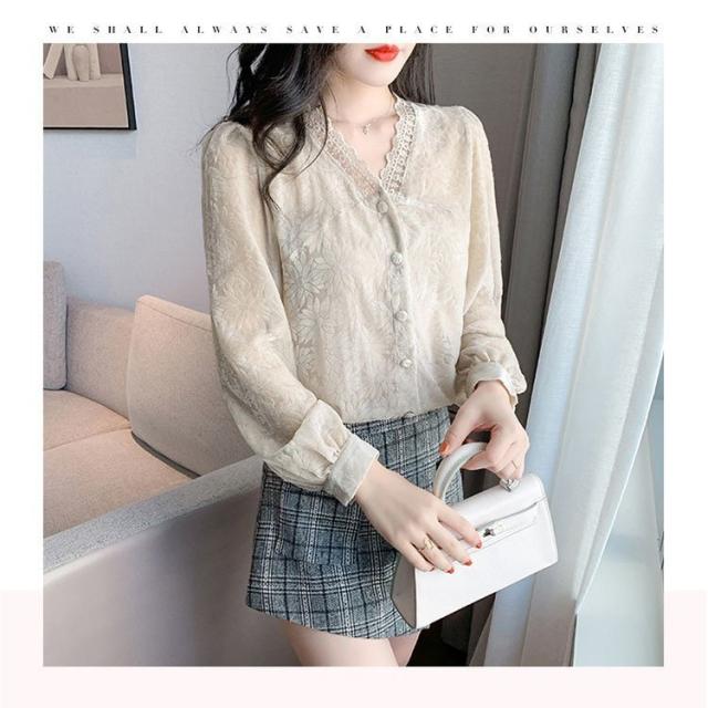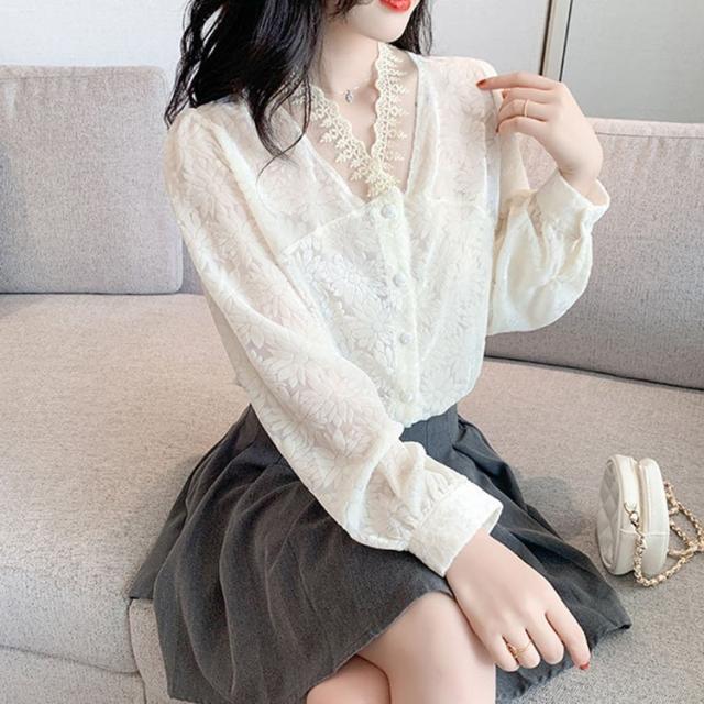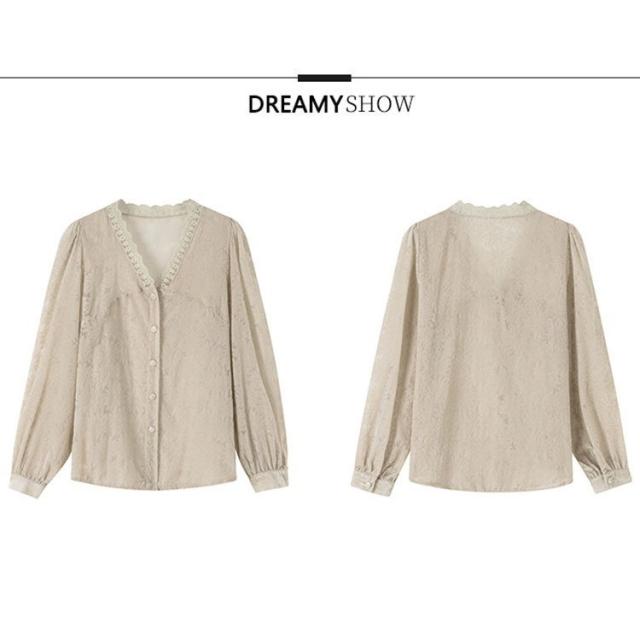 ブラウス レディース きれいめ 40代 Vネック 春秋 上品 レースブラウス 白シャツ 長袖 ゆったり オシャレ 韓国風 大人 Tシャツ30代 50代