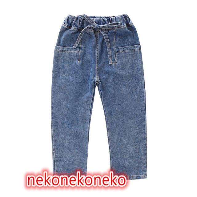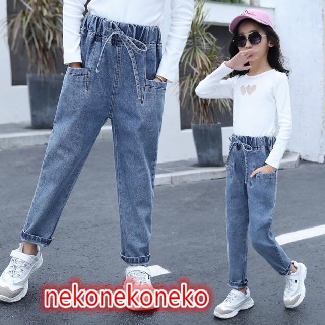 ウエストゴム 韓国子供服 デニムパンツ キッズ ロングパンツ サルエルパンツ ジーンズ ジーパン 女の子 こども服 ジュニア カジュアル 長ズボン 通園 通学