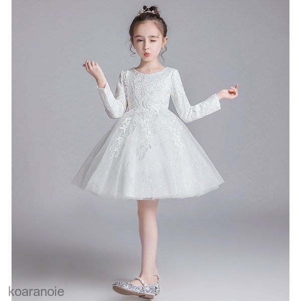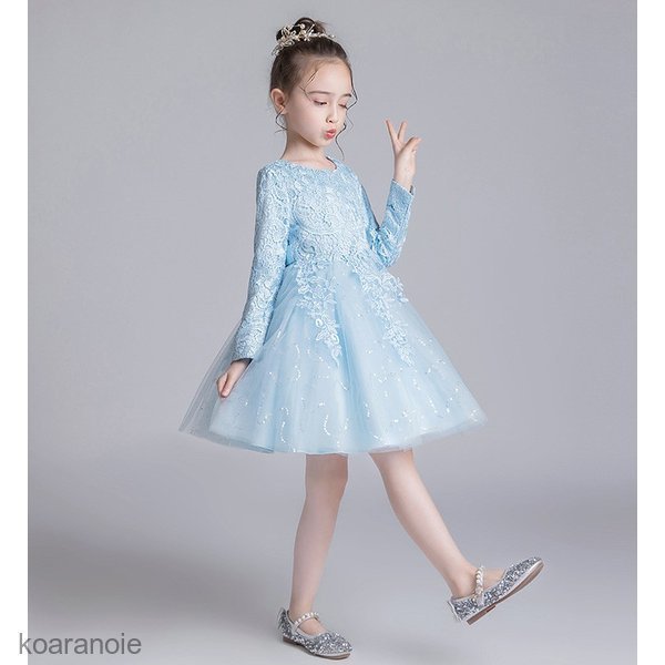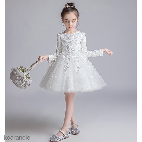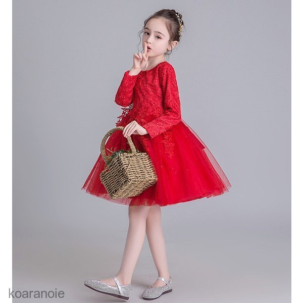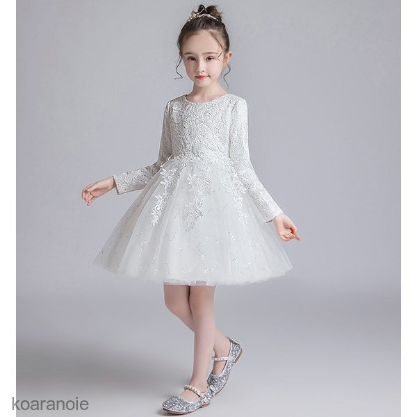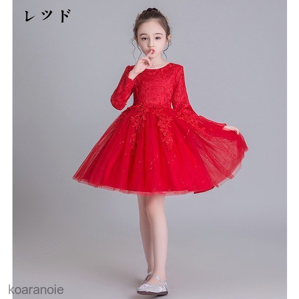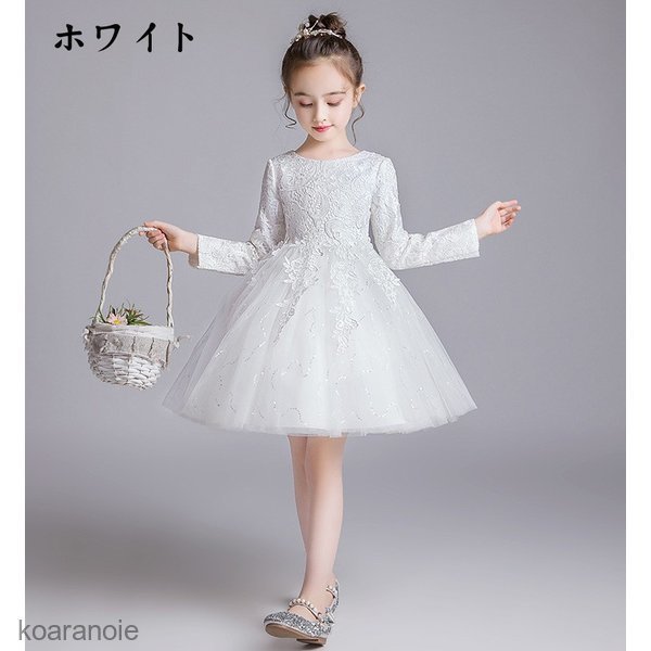 子供服ドレス 発表会 ピアノ発表会 結婚式 長袖 花飾り フォーマル ドレス 女の子 二次会 花嫁 ジュニア キッズドレス パーティードレス プレ 上品ドレス 秋冬