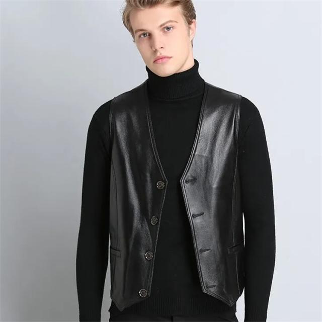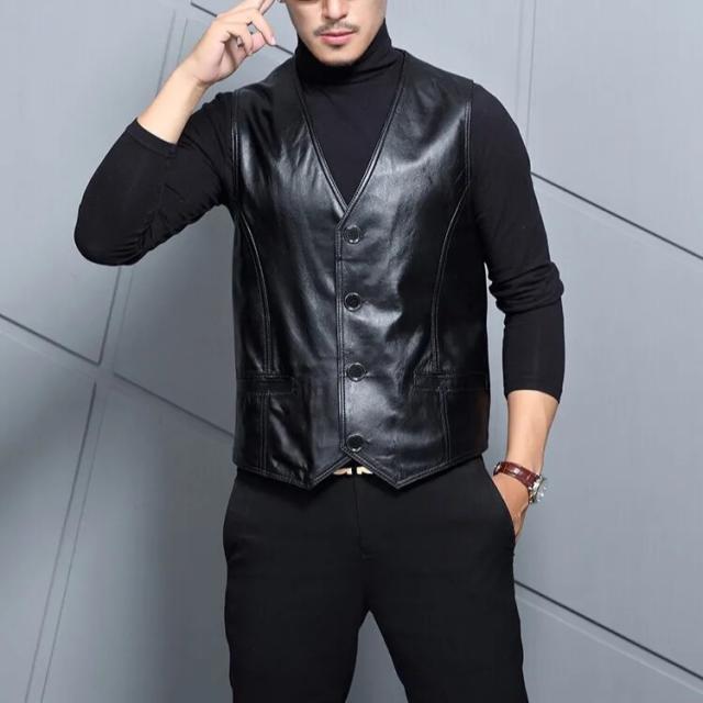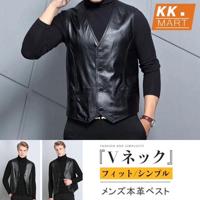 春夏秋冬 本革 ベスト メンズ レザーベスト ラム革 おしゃれ ジレベスト ベスト 前開き チョッキ バイク用ベスト 通勤 カジュアル フォーマル