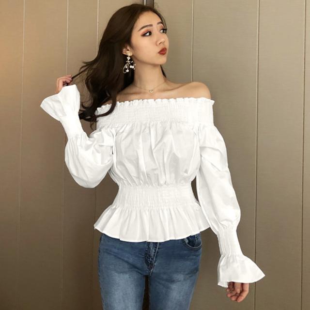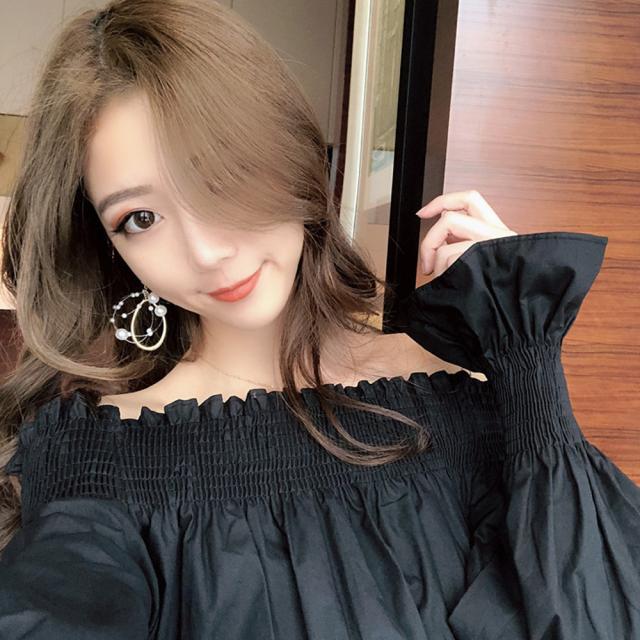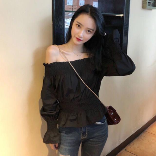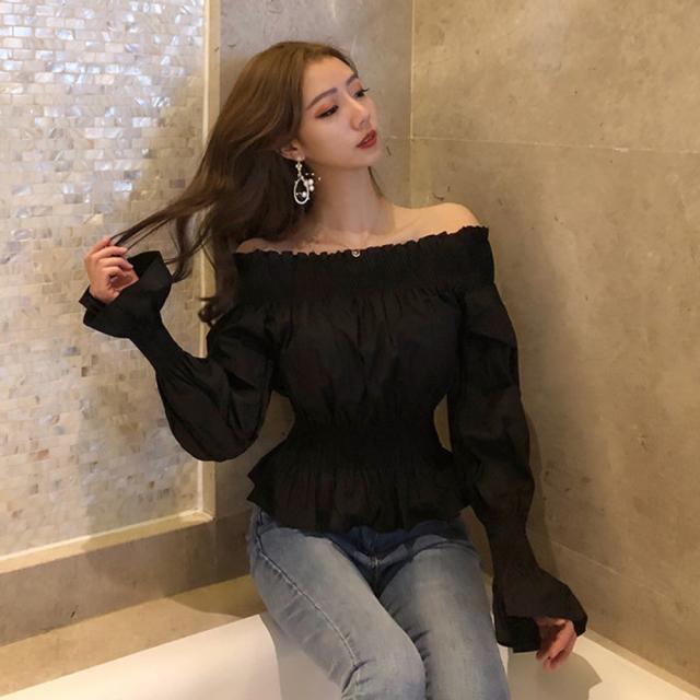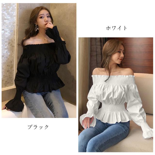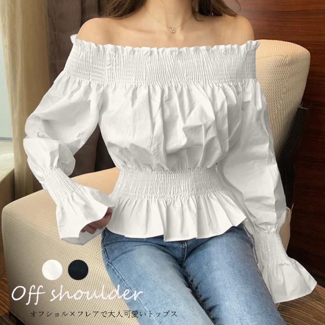 オフショルダートップス ブラウス レディース フレア 肩出し カットソー シャーリング シャツ セクシー【ネコポス可】