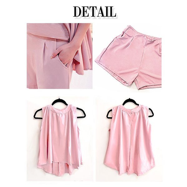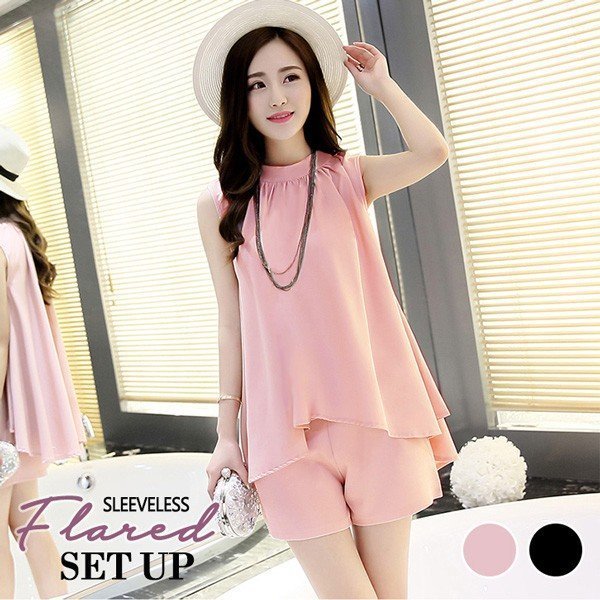 【2点セット】セットアップ フレアノースリーブ セットアップ ノースリーブ フレア フリル カジュアル 無地 レディース シンプル 合わせやすい 女性
