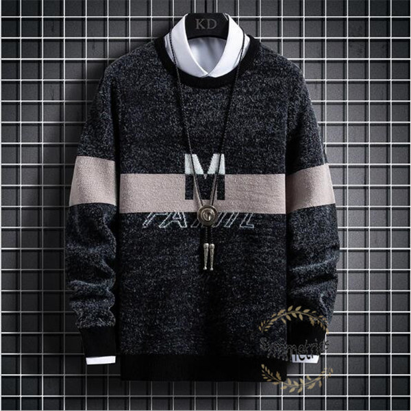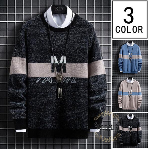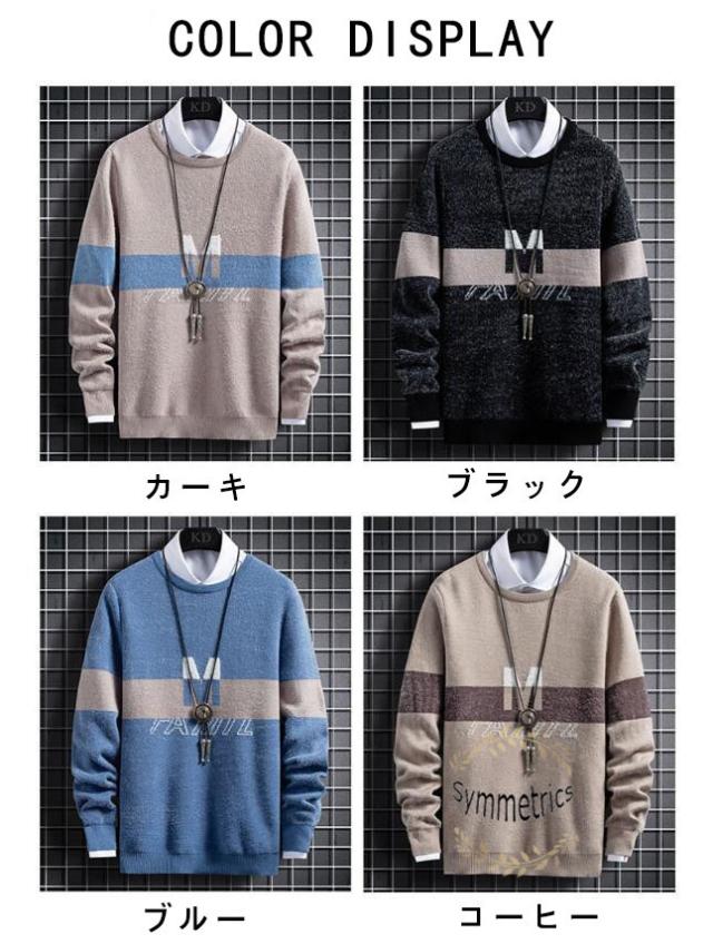 ニット メンズ ニットセーター クルーネック 長袖セーター ボーダー柄 秋 秋冬 トップス 防寒 メンズセーター