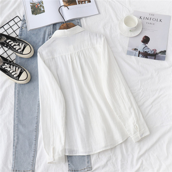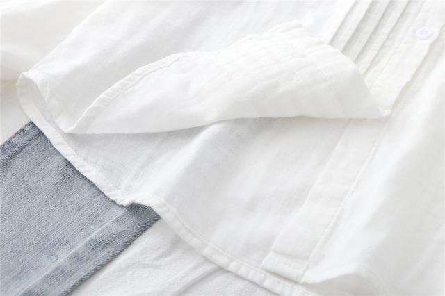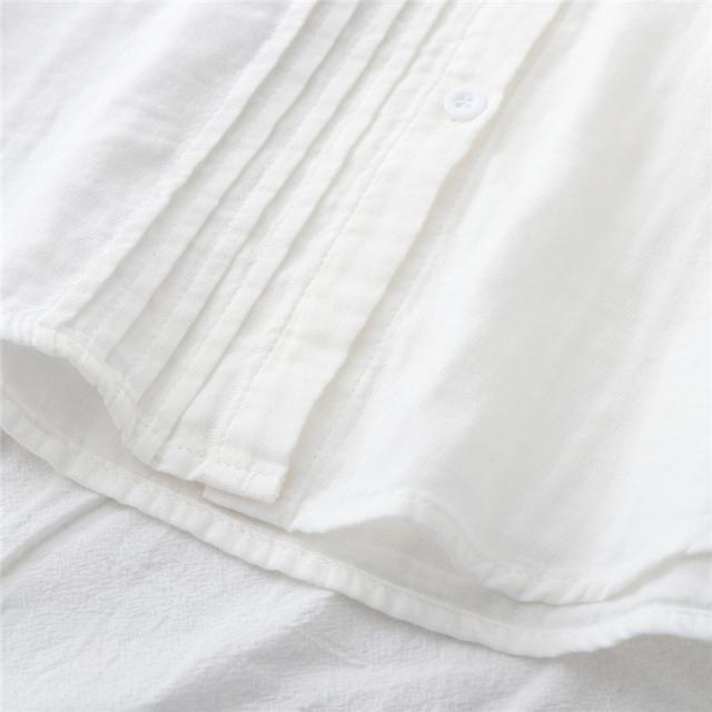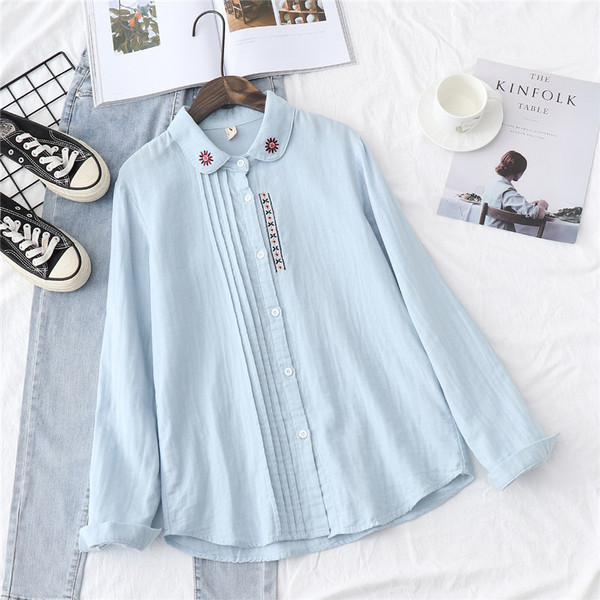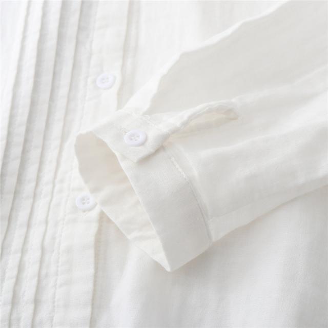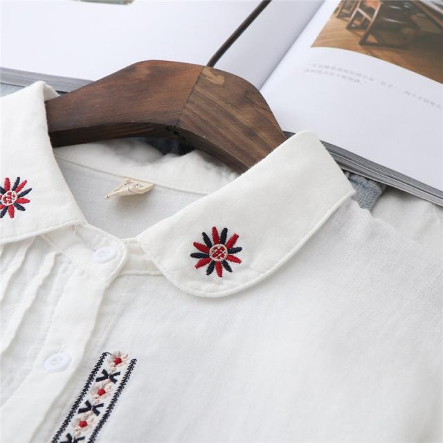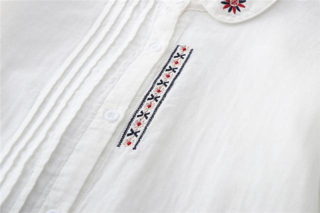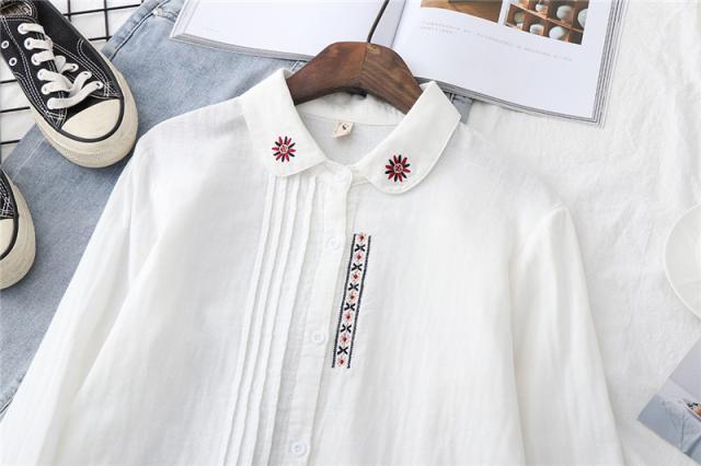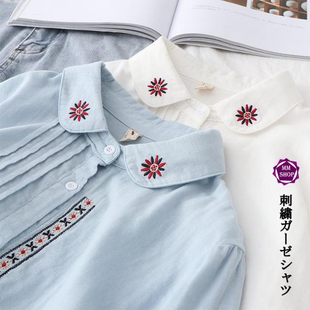 シャツ ガーゼ ホワイトシャツ 白シャツ 綿麻 綿 刺繍 春 長袖 ブラウス トップス シャツブラウス レディース 着心地よい 前開き 通勤 通勤 送料無料