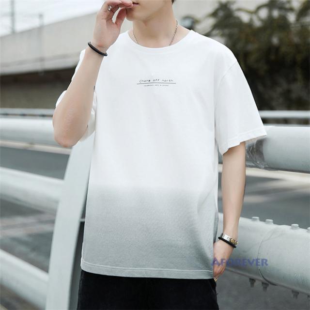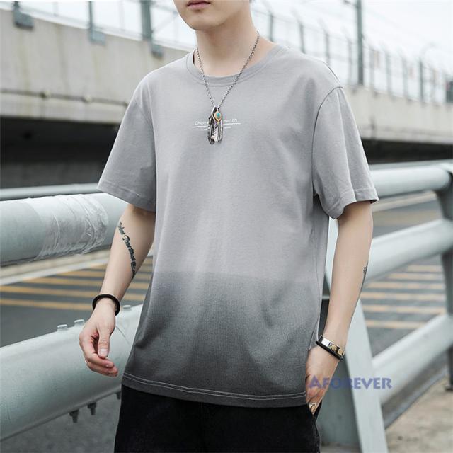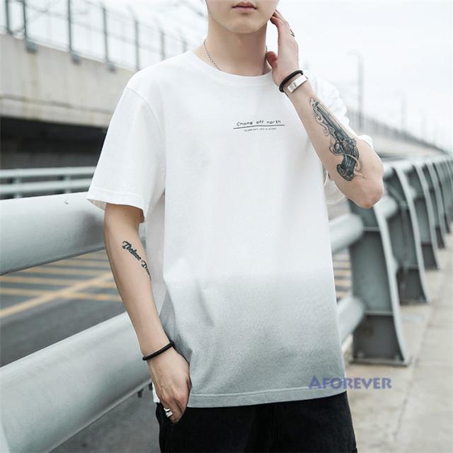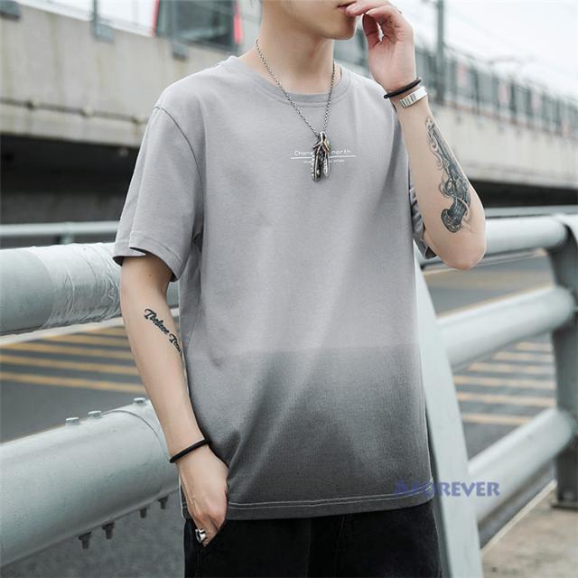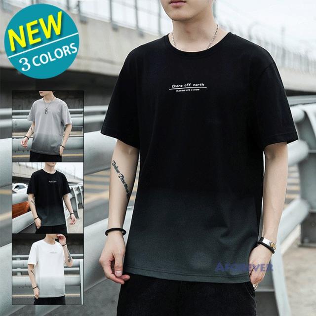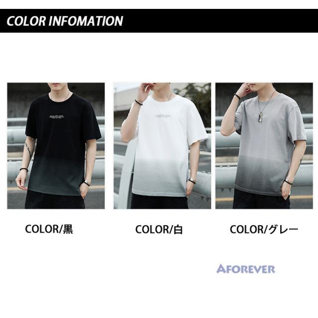 Tシャツ 半袖 メンズ おしゃれ カットソー カラー配色 クルーネック 半袖Tシャツ グラデーション トップス 夏服