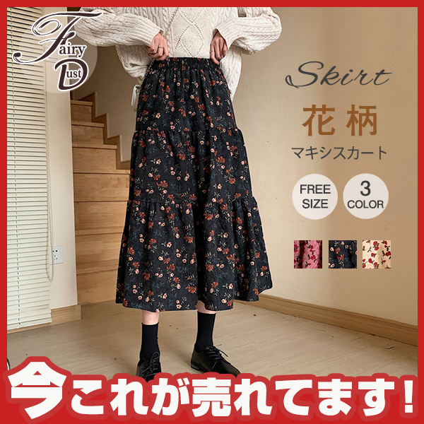 スカート レディース 花柄 マキシスカート ウエストゴム aライン おしゃれ 通勤 OL 大人 新作 20代 30代 40代 春 秋
