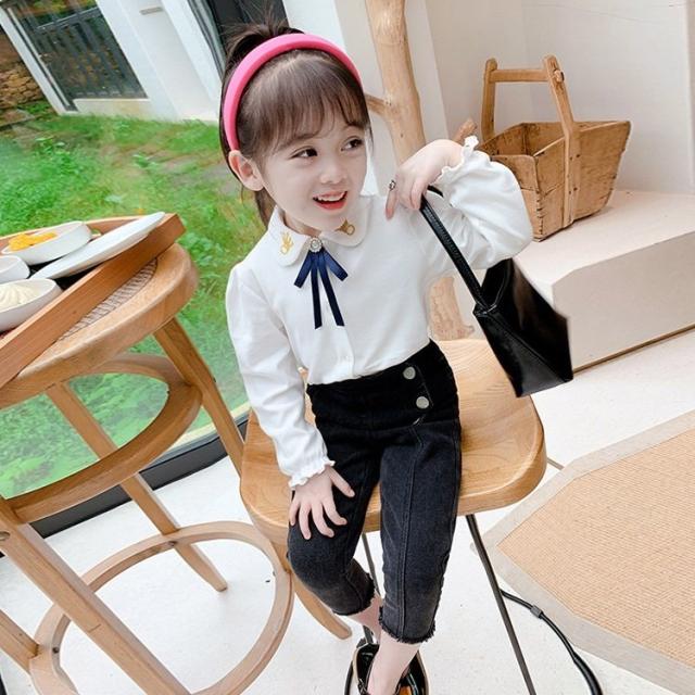 子供ジーンズ 長ズボン ジーンズ 女の子 ガール おしゃれ 可愛い ファッション きれいめ ゆったり カジュアル キッズ ことも服 ジュニア服 通学 2色