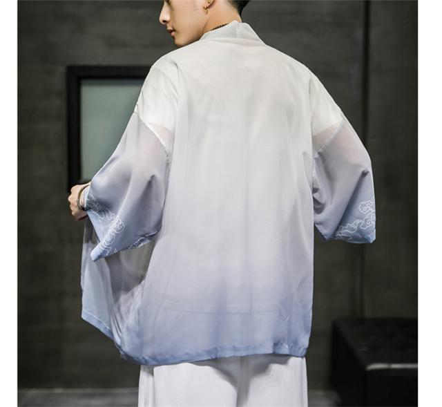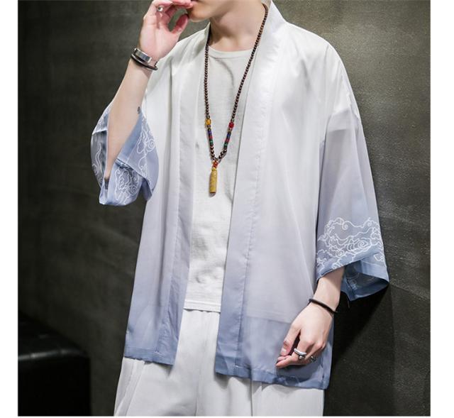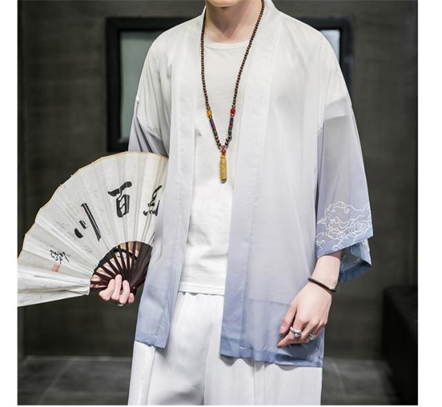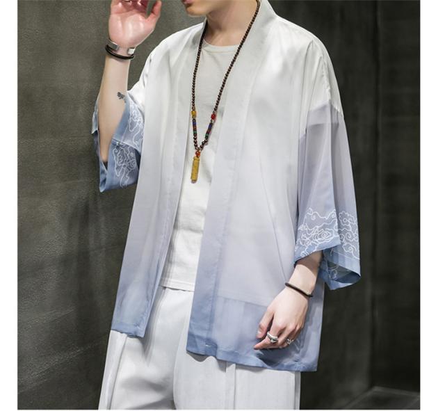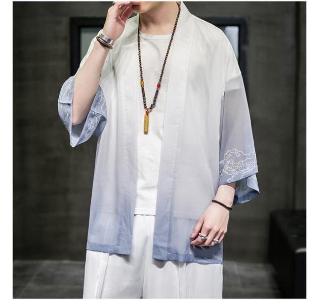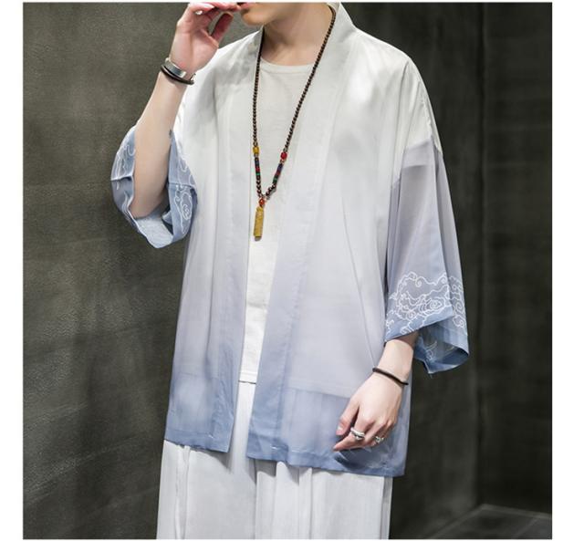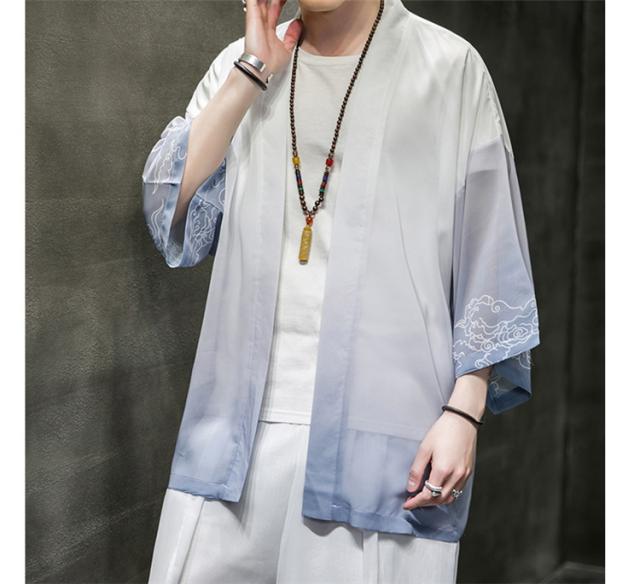 羽織 着物 メンズ 浴衣風 七分袖 カーディガン カジュアル 甚平 ジャケット アウター 花火大会 お祭り 無地 薄手 ゆったり 大きくサイズ