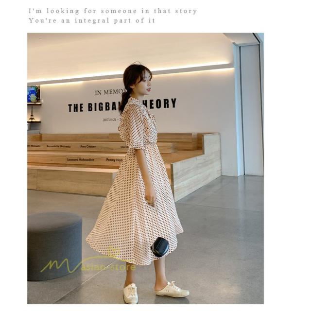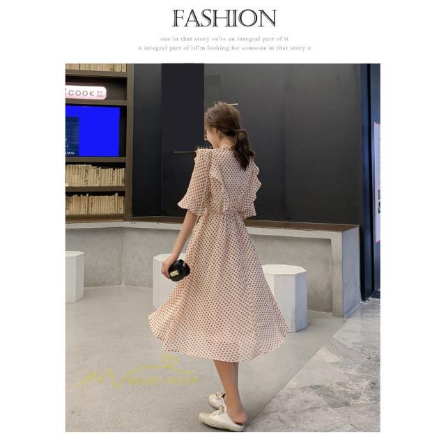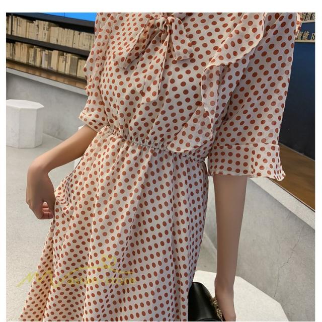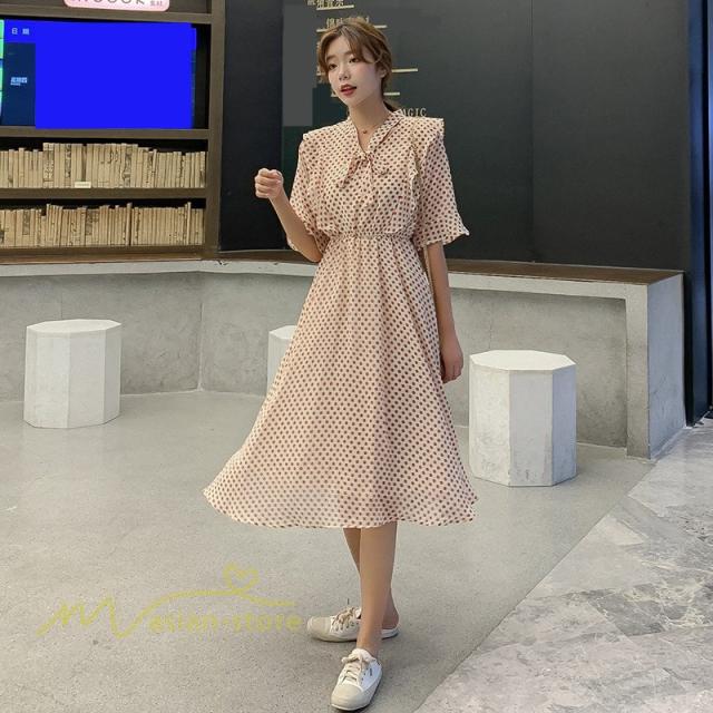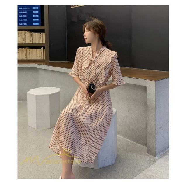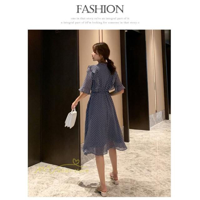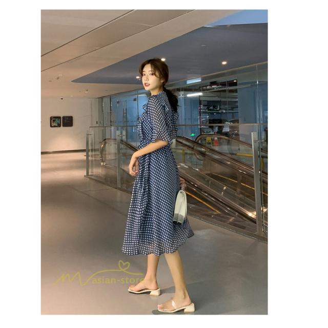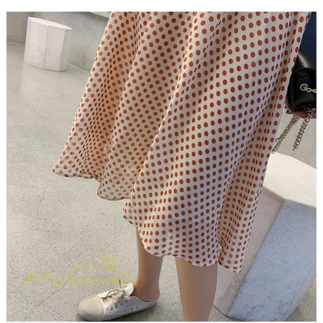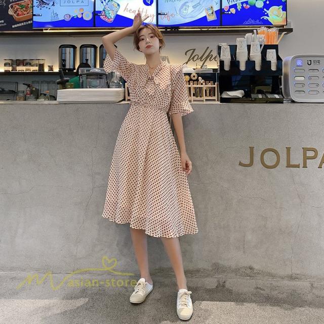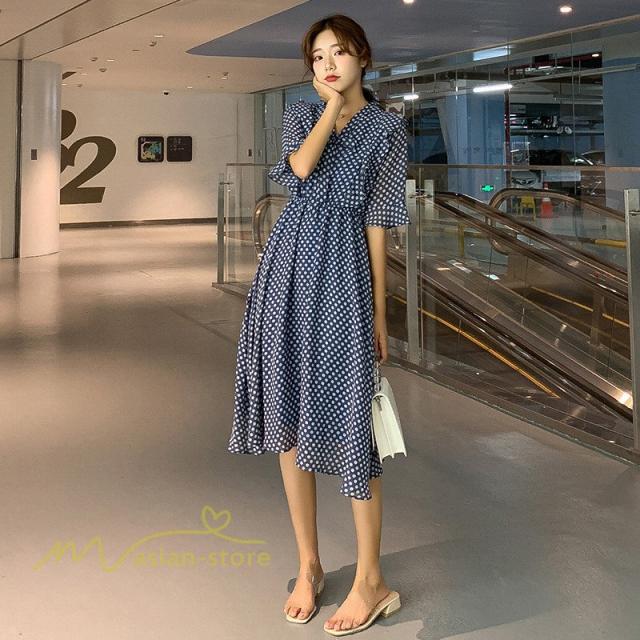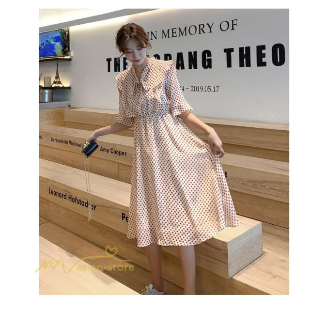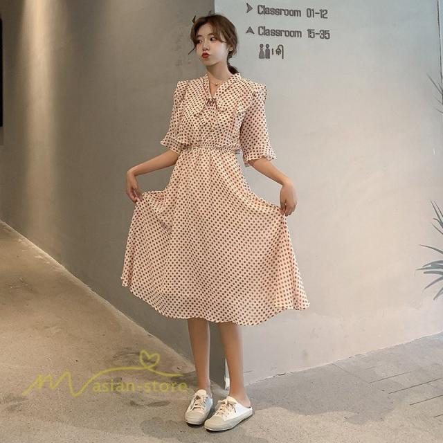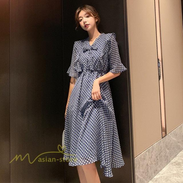 ワンピース レディース 春 春夏 Aライン シフォン カジュアル ワンピ ファッション レトロ サマードレス 無地 シンプル エレガント 着回し ドット柄 Vネック