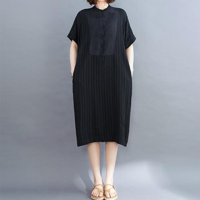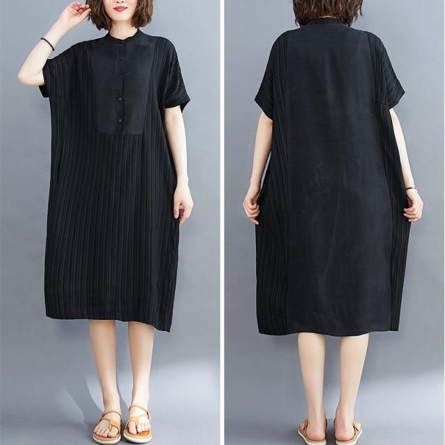 | サイズについての説明 | Iラインシルエットのおしゃれなワンピース 襟元はバンドカラーですっきりとしたデザインです。 【サイズについて】 ワンサイズ:着丈114cm バスト144cm 袖丈27cm 袖口34cm 裾まわり118cm |
