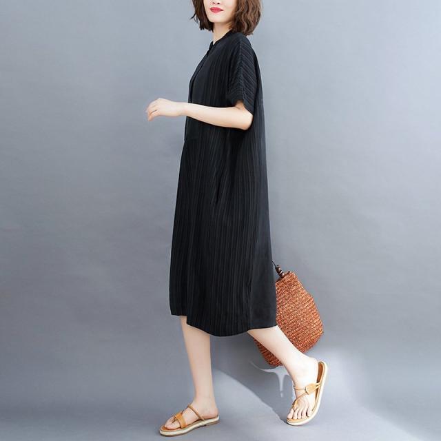 ワンピース ミディアム丈 半袖 Iラインワンピ レディース 女性 婦人服 ドルマンスリーブ ストライプ 単色 シンプル 膝丈 ミモレ丈 かわいい おし