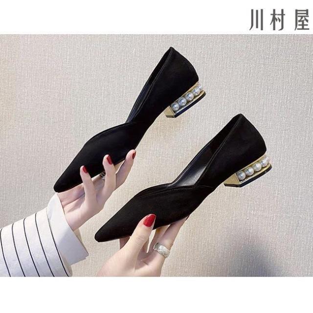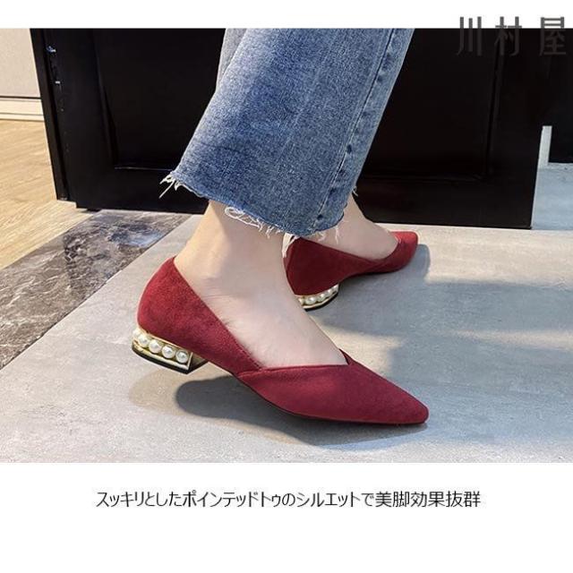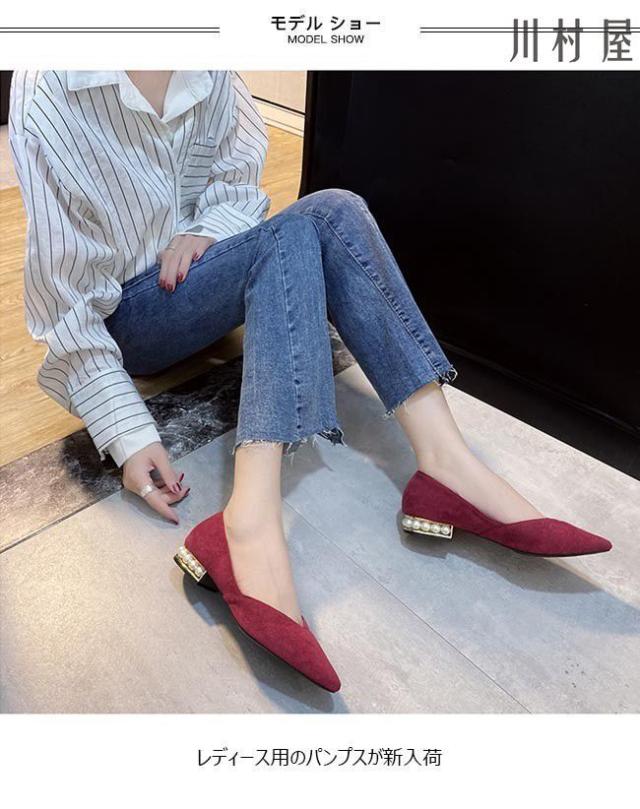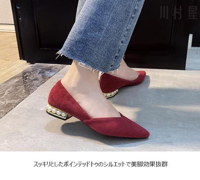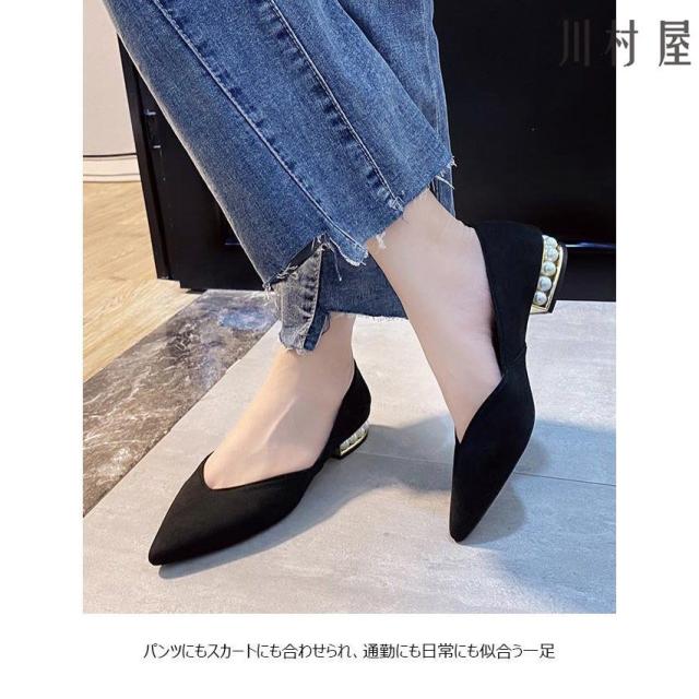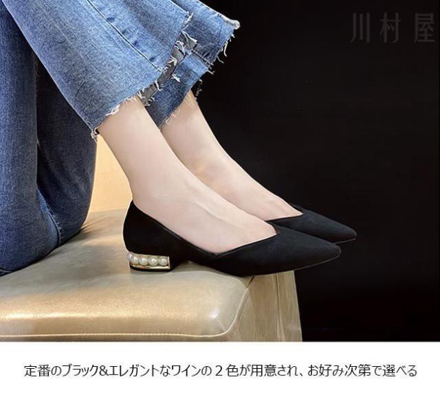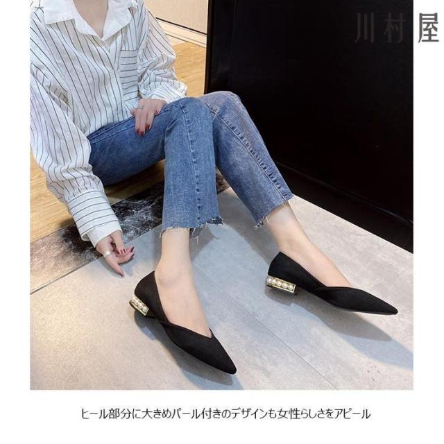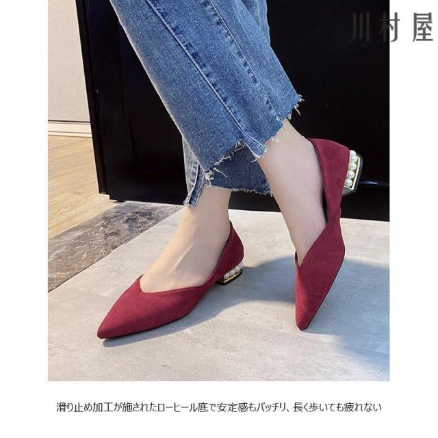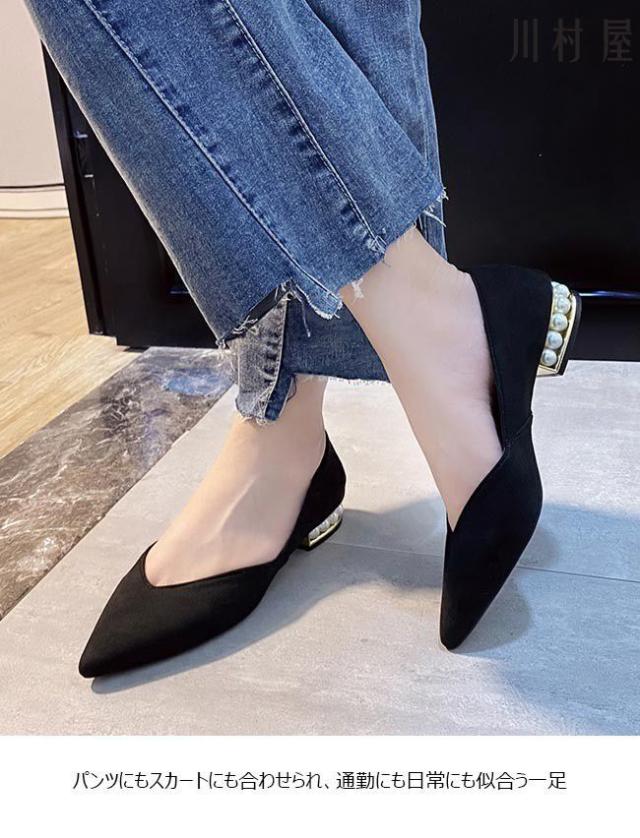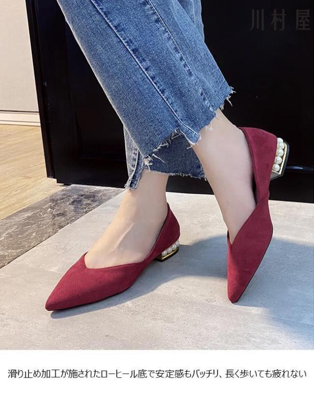 パンプス 歩きやすい ポインテッドトゥ レディース ローヒール パンプス オフィス パール 美脚 シューズ ローカット 靴 レトロ 通勤 婦人靴