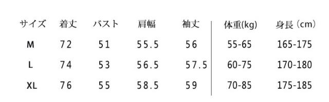 | サイズについての説明 | 「サイズ」M L XL サイズ参考表をご確認お願いします。 素人採寸の為、2-3cm誤差をご容赦ください。 「注意事項」 ◆モニターの発色の具合によって実際のものと色が異なる場合がございます。ご了承ください。 ◆ご利用の環境により画面上と実物では多少、色具合が異なって見える場合もございますのでご了承願います。 ◆カラー名称は、商品識別用の名称で実際の色を表すものではございません。 |