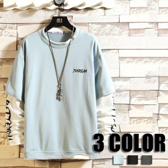 トレーナー メンズ 長袖 プルオーバー フェイクレイヤード メンズ トレーナー 大きいサイズ スウェット プルオーバートレーナー メンズ 3色