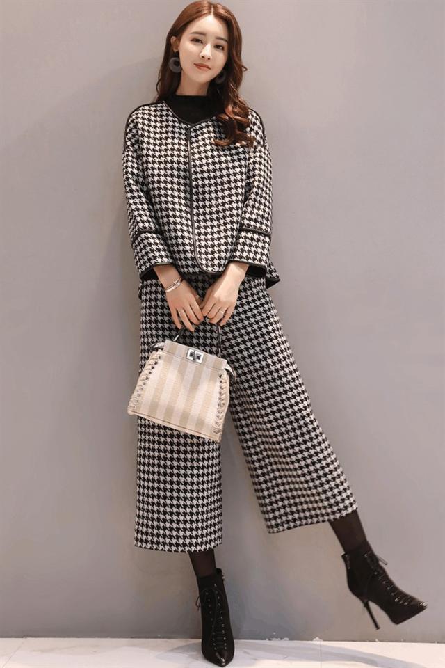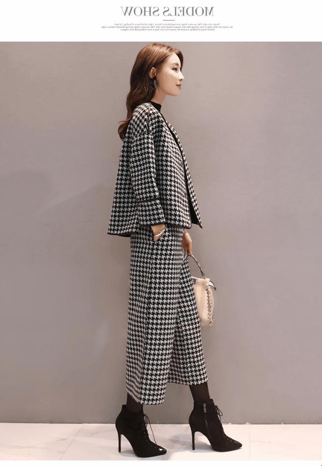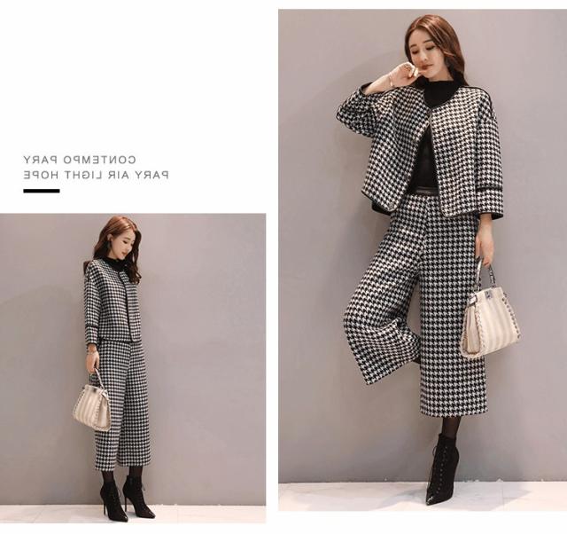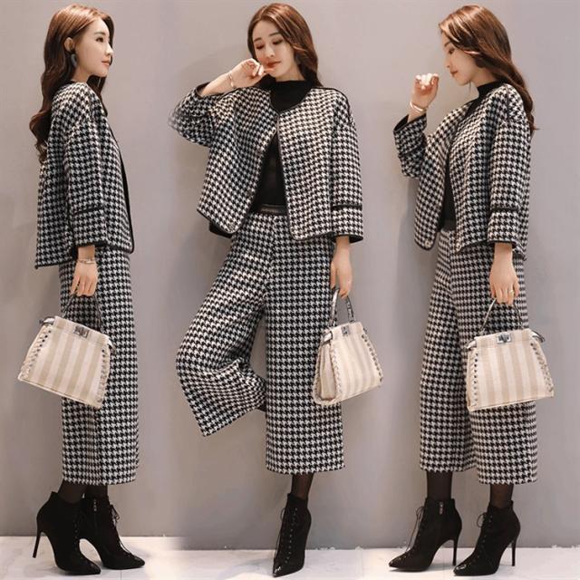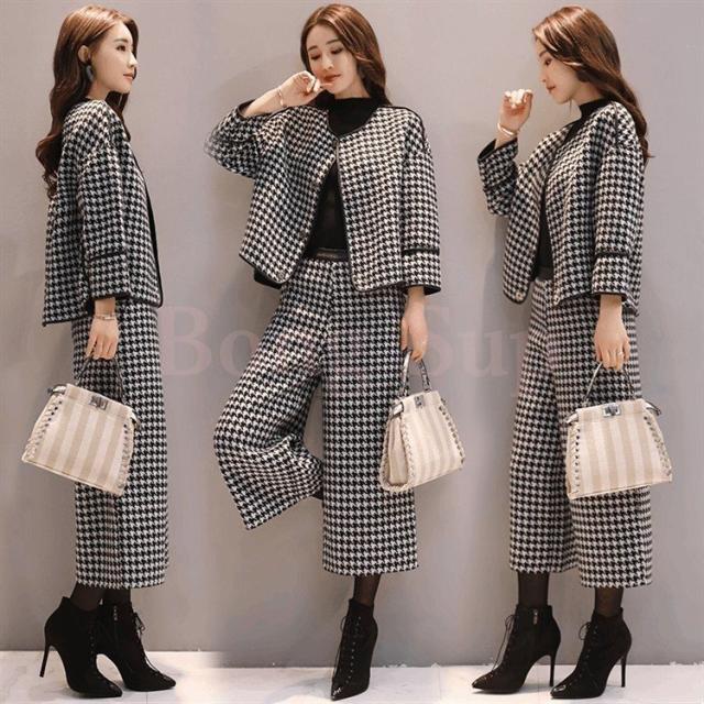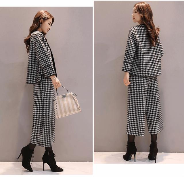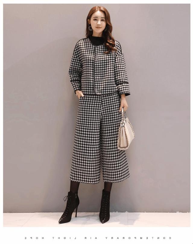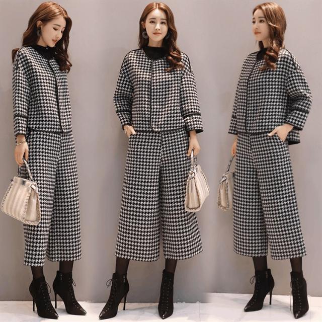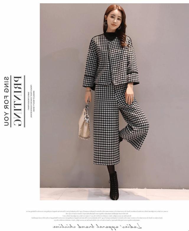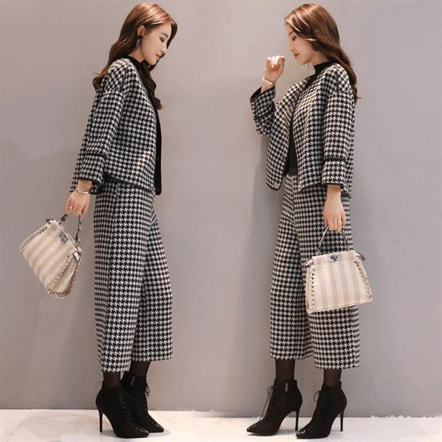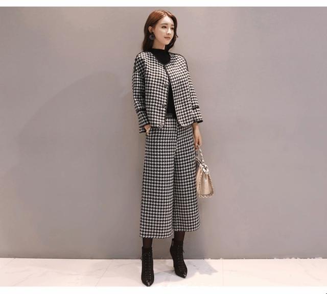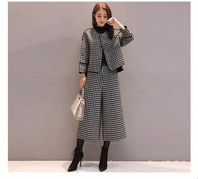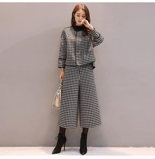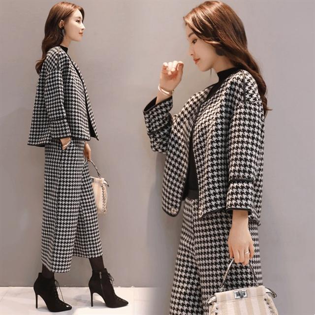 2点セット パンツ 毛羽織 らしゃ 千鳥格 レディース コート 秋冬 40代長袖トップス 上下セット 韓国風 通勤 OL オシャレ 上品