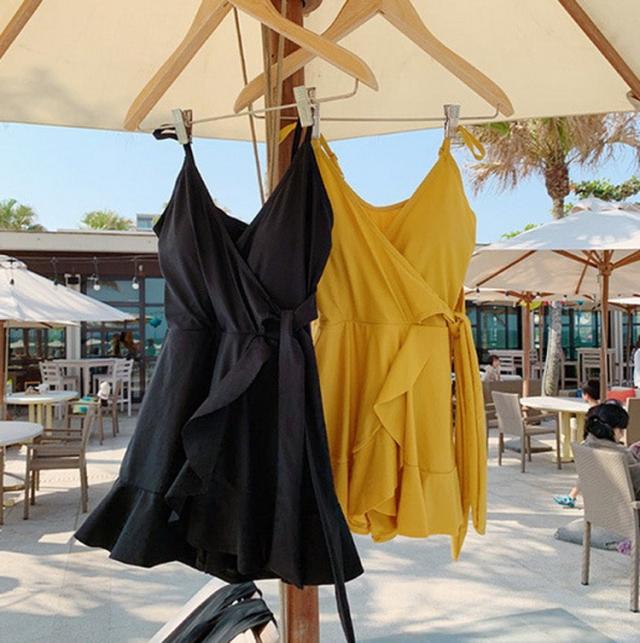 水着 レディース キャミソービキニ ワンピースビキニ 無地 体型カバー 40代 韓国風 レディース水着 リボン 着痩せ オシャレ 3色