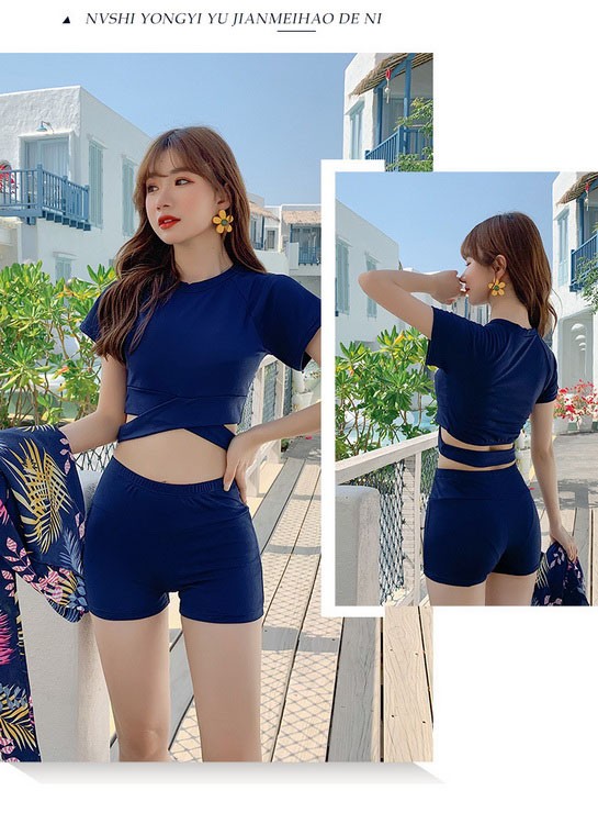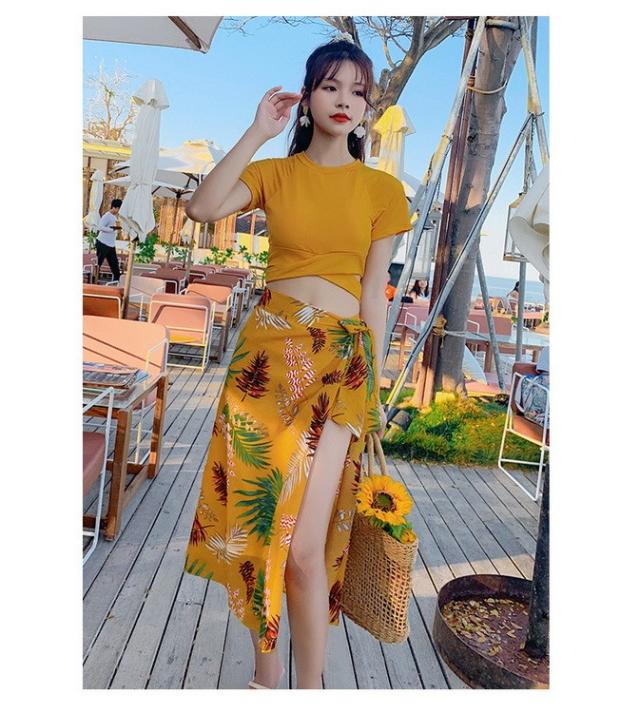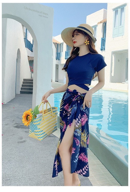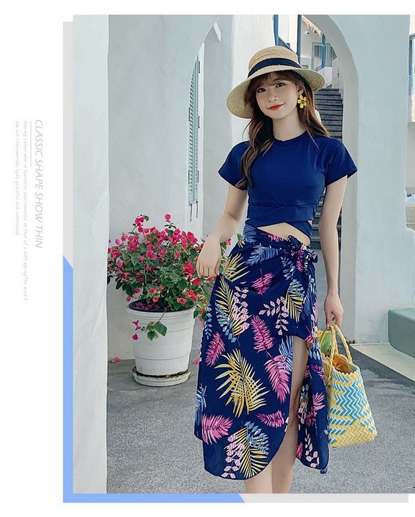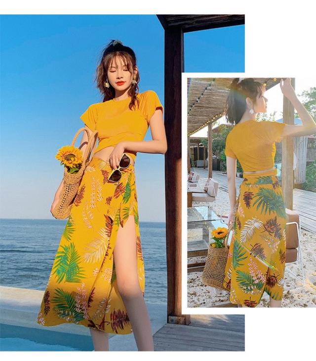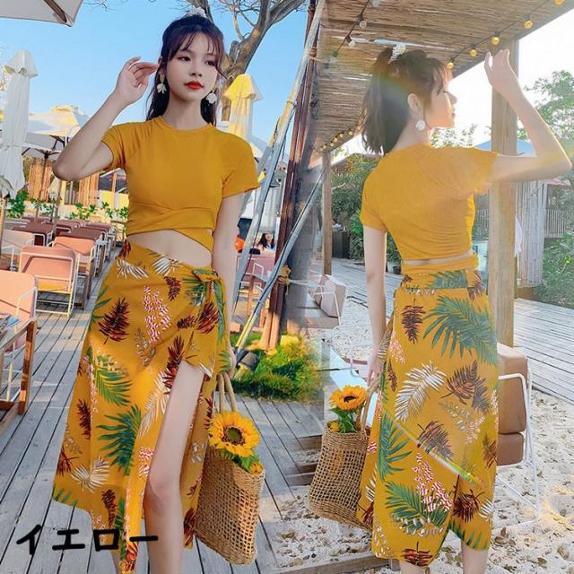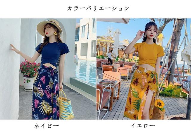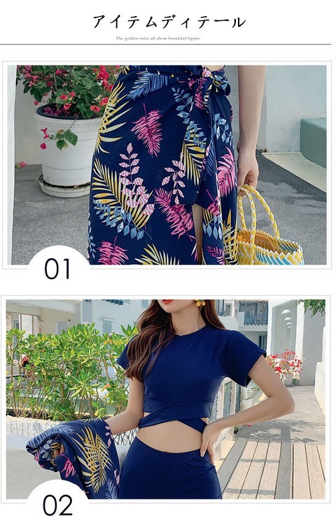 水着レディース 体型カバー 水着3点セット セパレート ボタニカル柄巻きスカート キュロット 小胸バンドゥビギニ 水着 韓国風 40代 スイムウェア 温泉 ママ水着