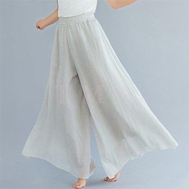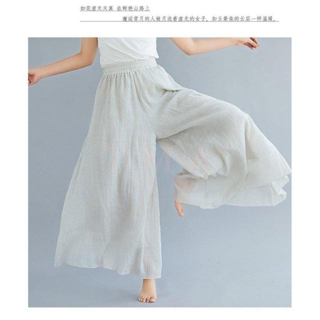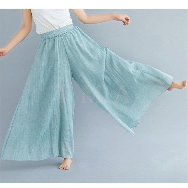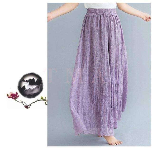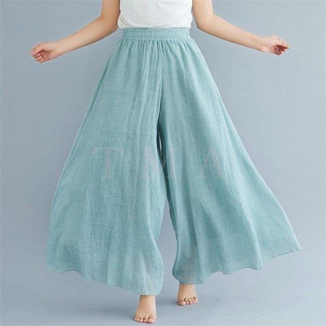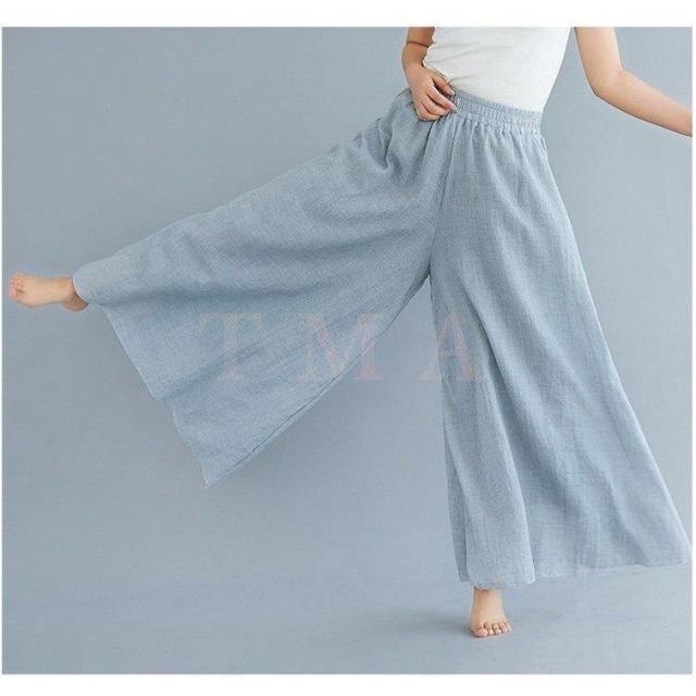 スラックス レディース 夏用 綿麻 スラックス 無地 リネン 九分丈 キュロットスカート ロング 大きいサイズ オフィス 通勤 サロペット 旅行 民族風12色
