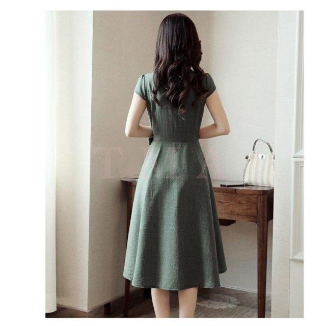 シャツワンピース レディース 春夏 膝丈ワンピース 綿麻 40代 キレイめ 半袖ワンピース vネック aラインスカート 結婚式ドレス 韓国風 オシャレ 上品 着痩せ