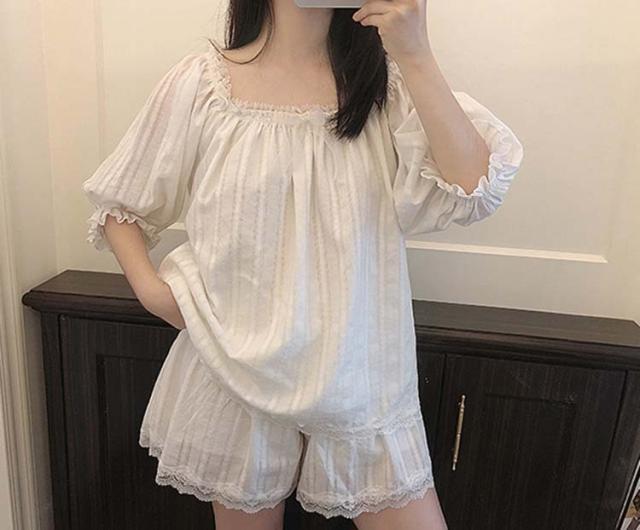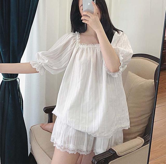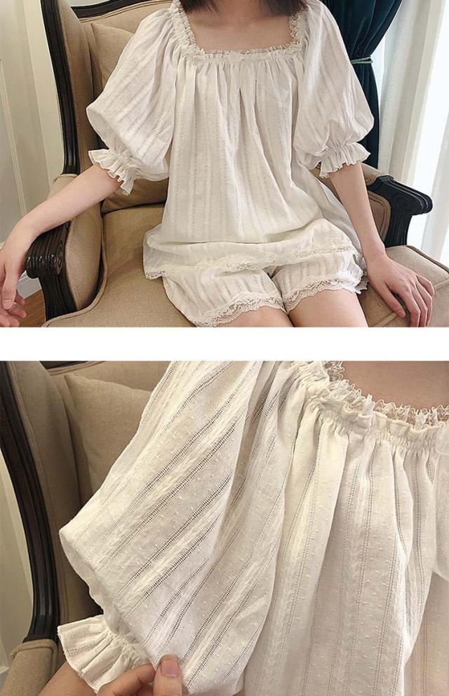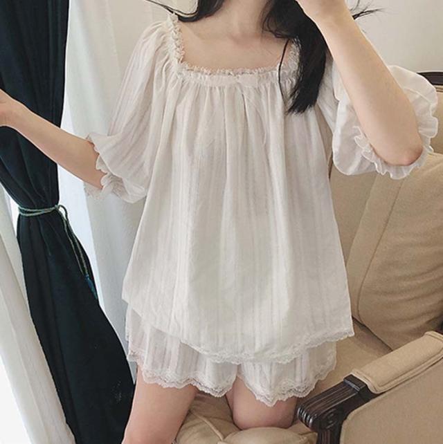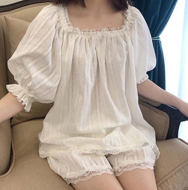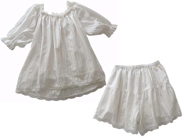 レディース 2点セット パジャマ バスローブ トップス+パンツ コットン ホテル Vネックス 夏用 半袖 イズ ナイトガウン 大きいサイズ 寝巻 部屋着