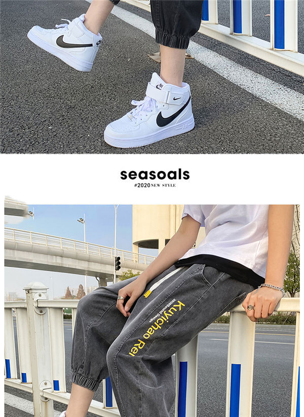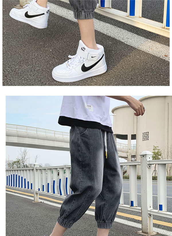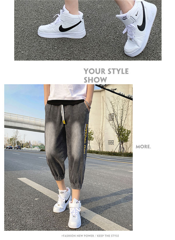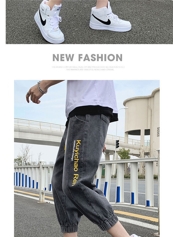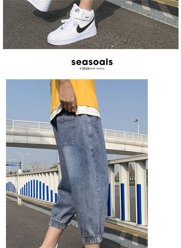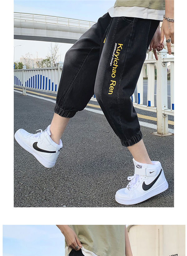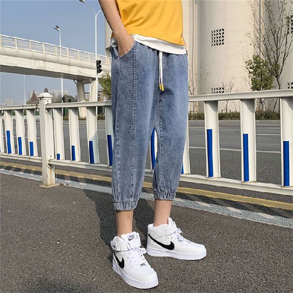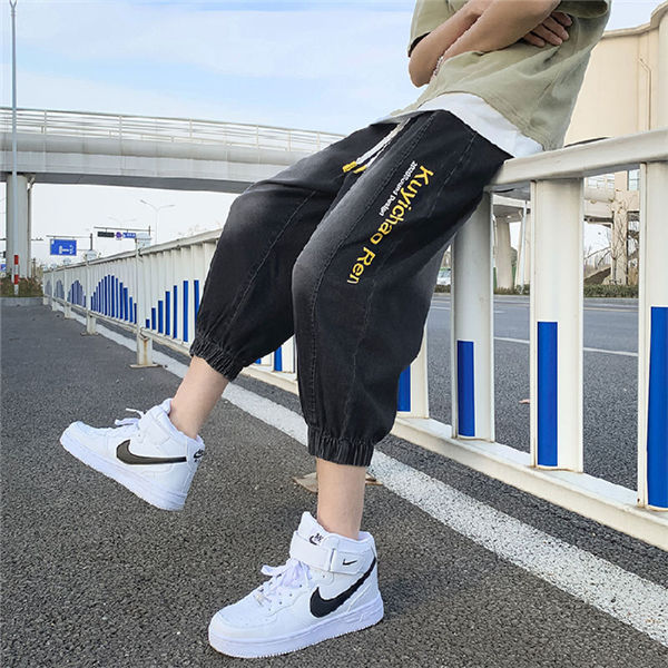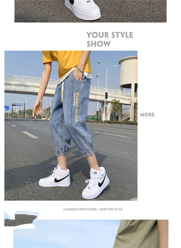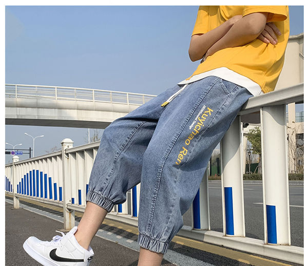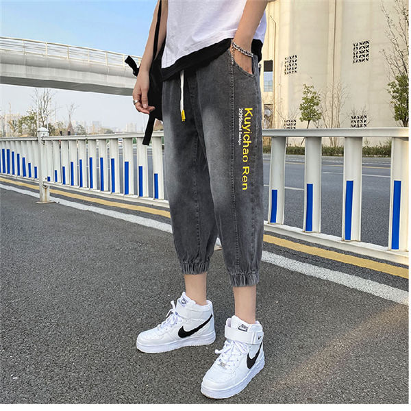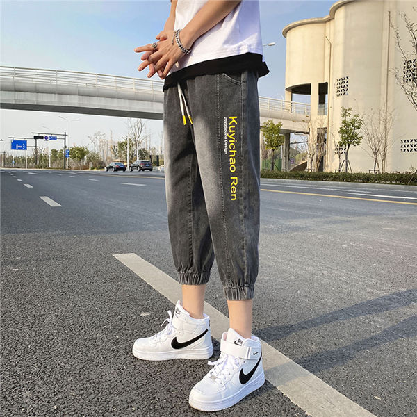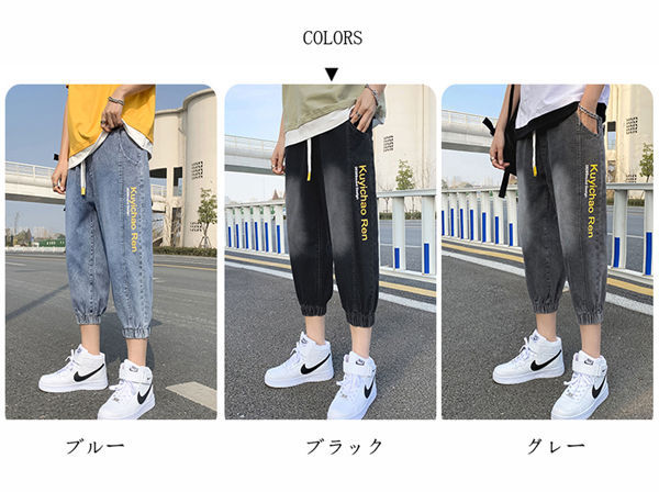 クロップドパンツ メンズ デニムパンツ スウェット サルエルパンツ 刺繍 英語文字 短パン デニムジーンズ 夏物 夏ズボン 送料無料