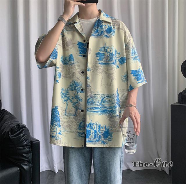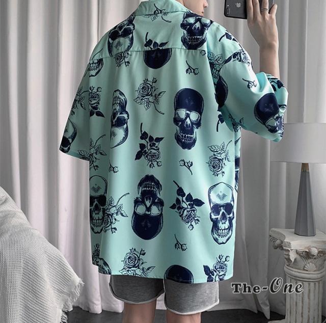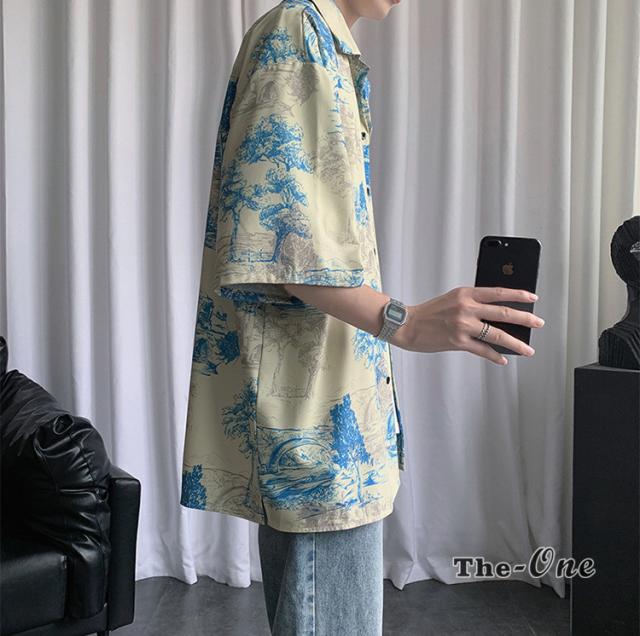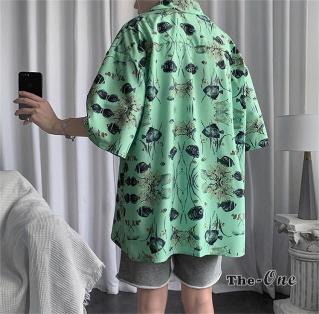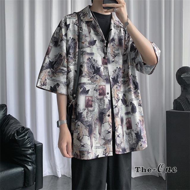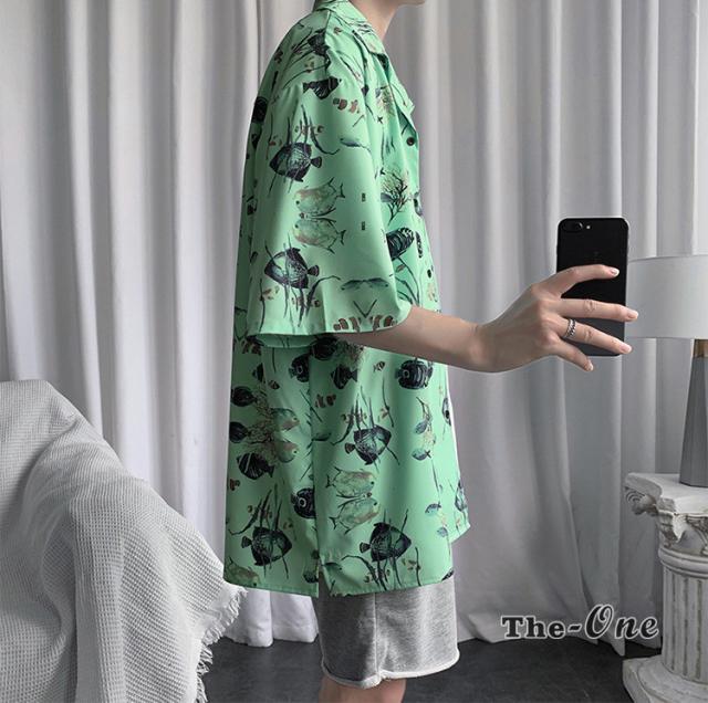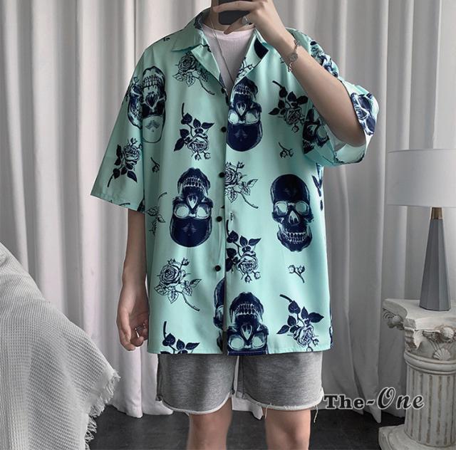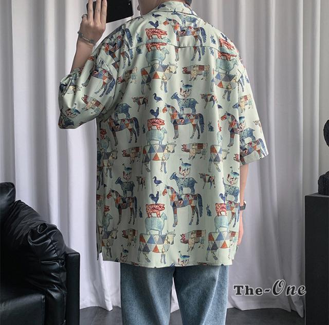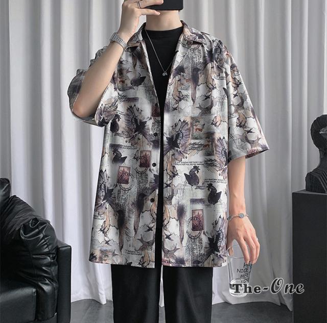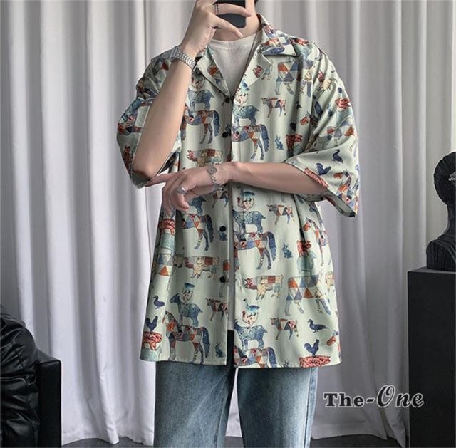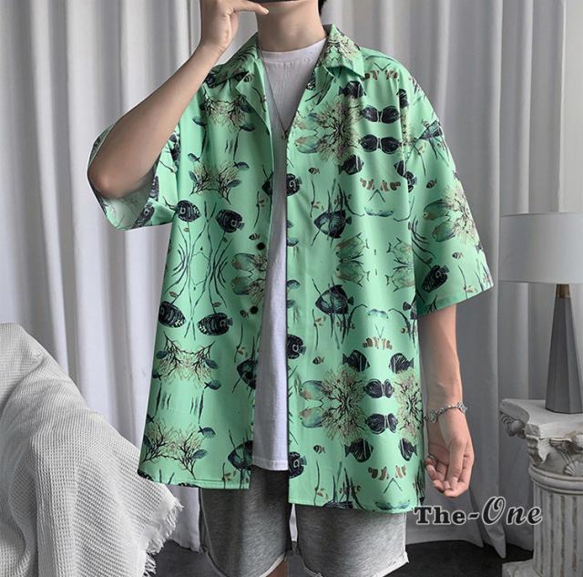 開襟シャツ メンズ 総柄シャツ カジュアルシャツ 半袖 オープンカラー おしゃれ 夏服 半袖シャツ