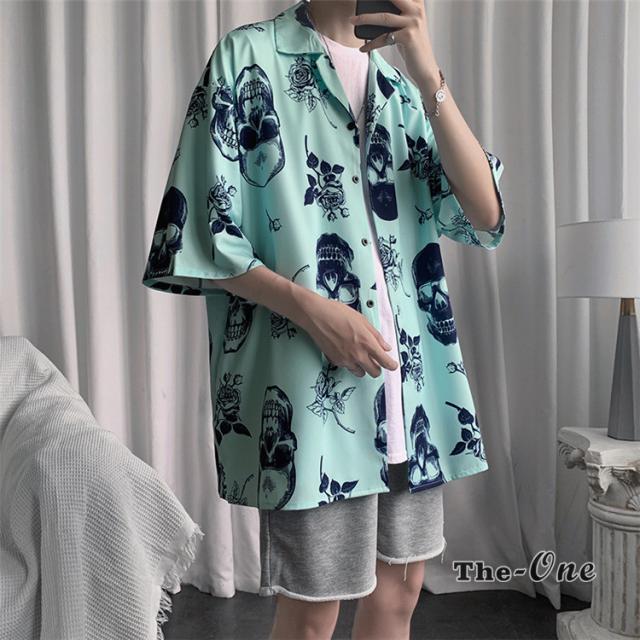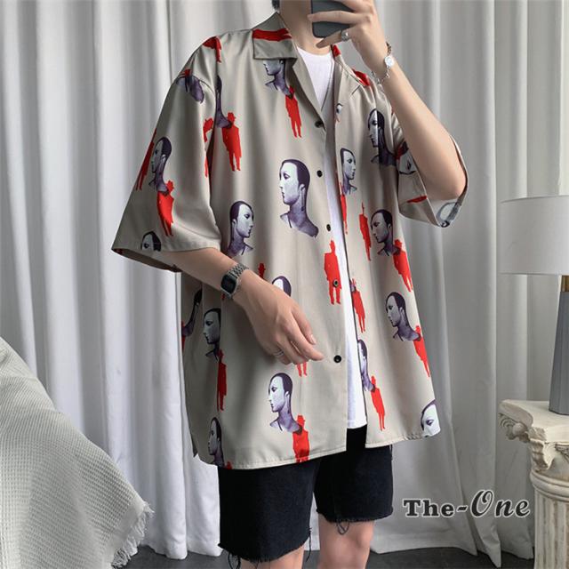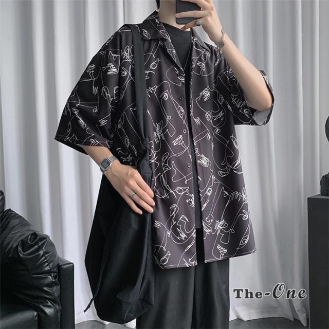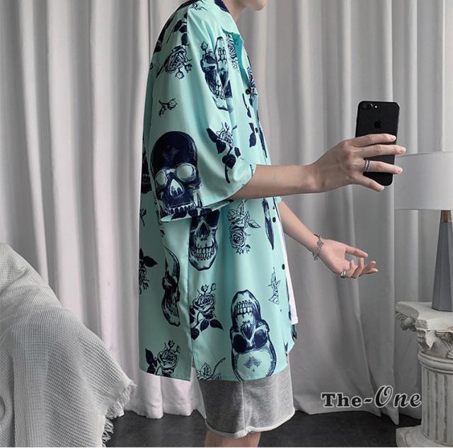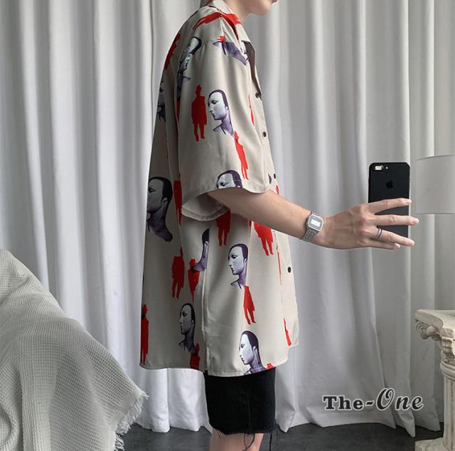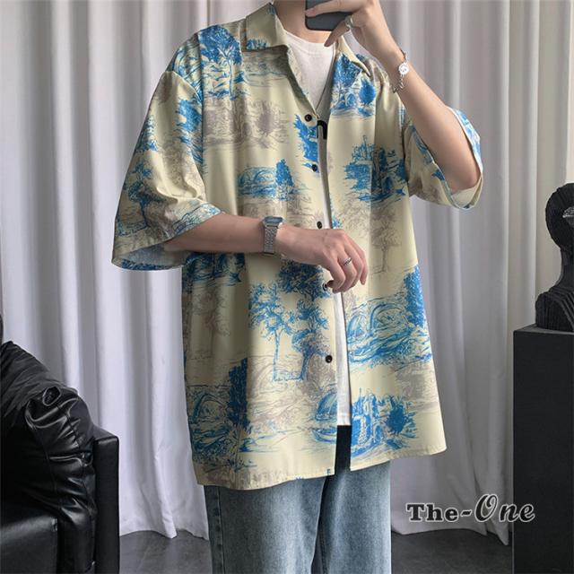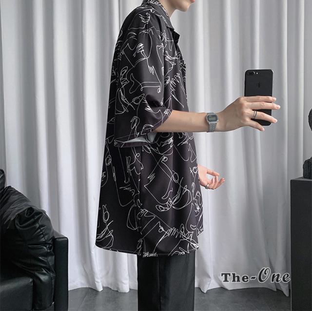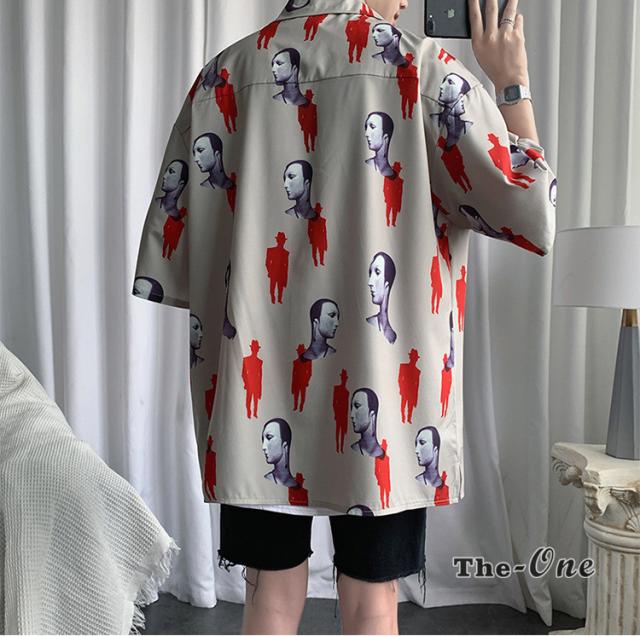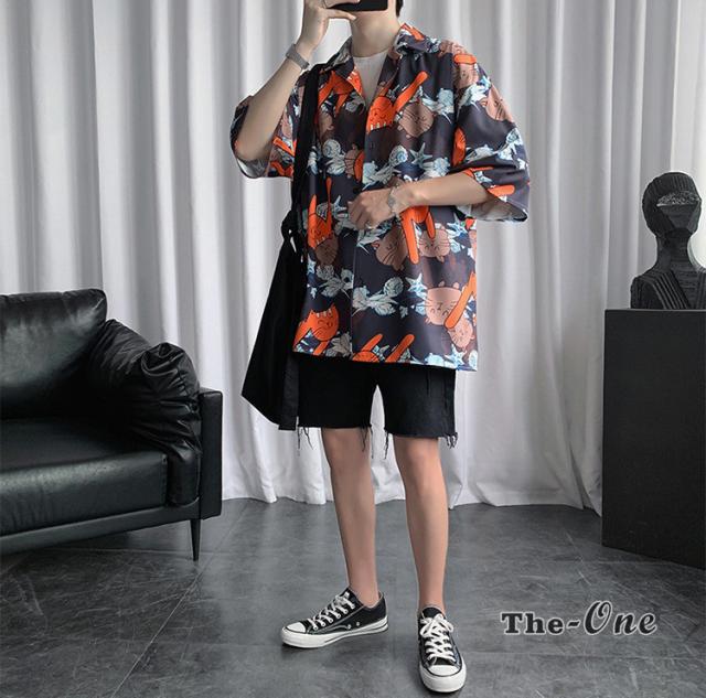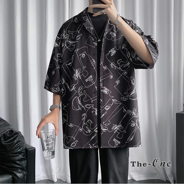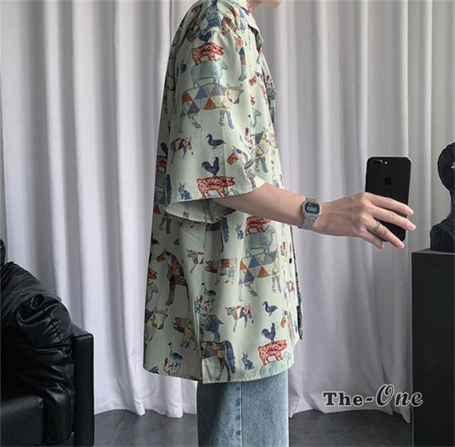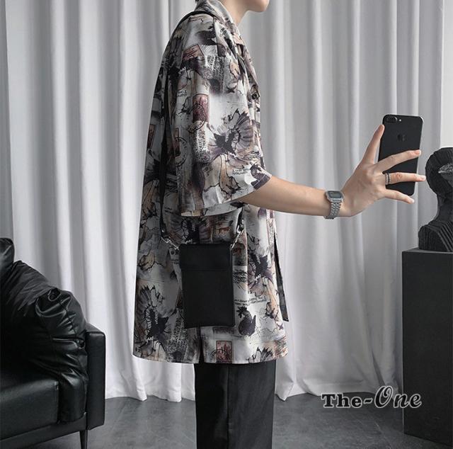 開襟シャツ メンズ 総柄シャツ カジュアルシャツ 半袖 オープンカラー おしゃれ 夏服 半袖シャツ