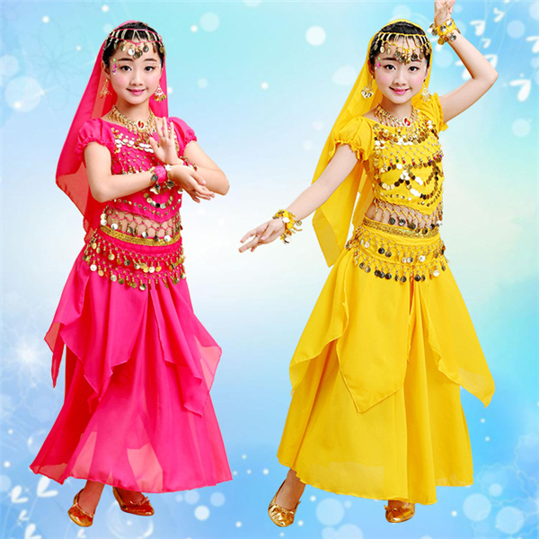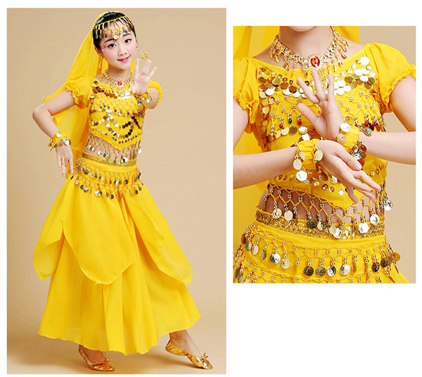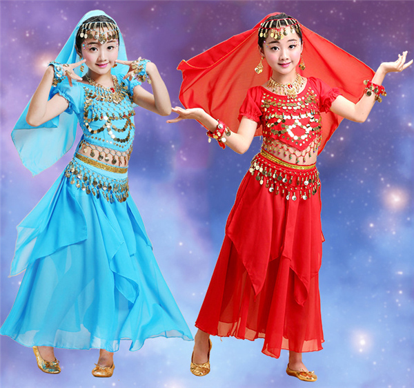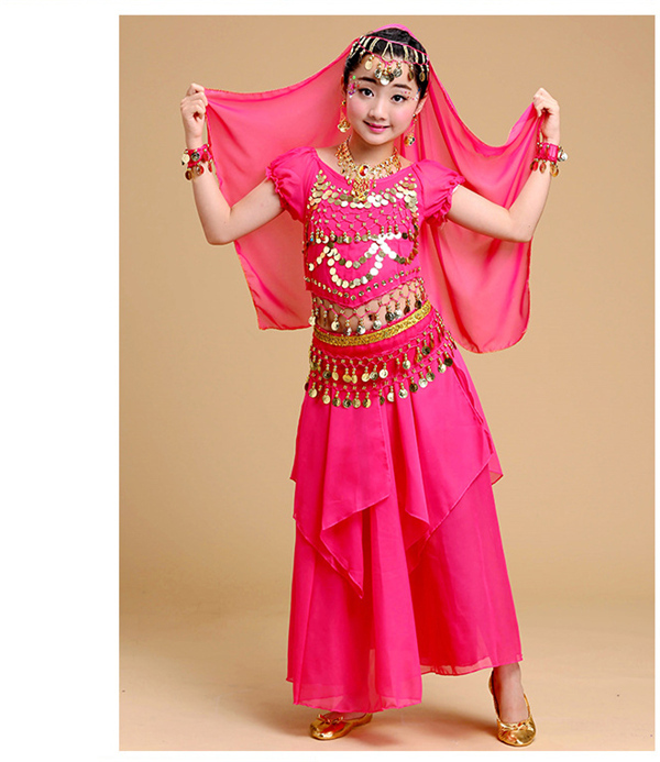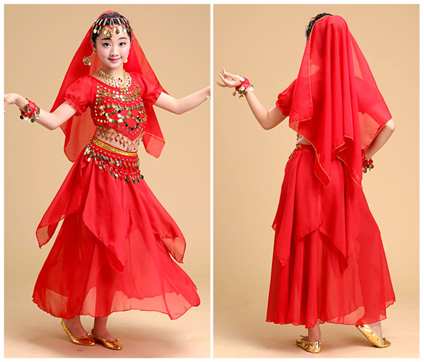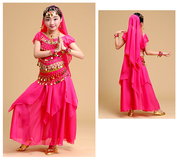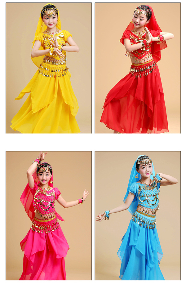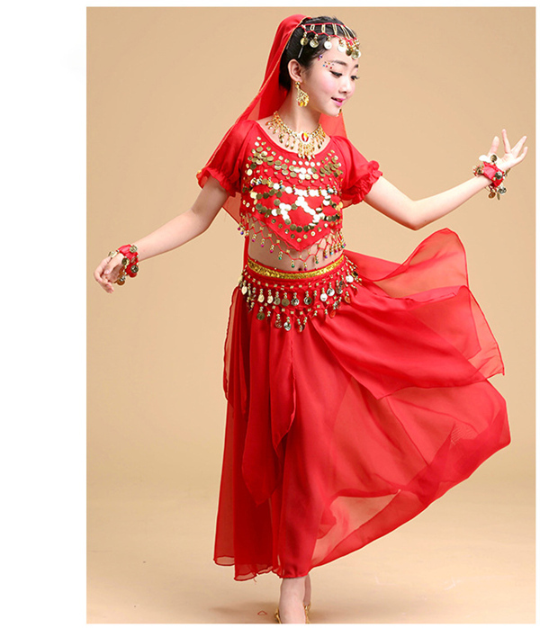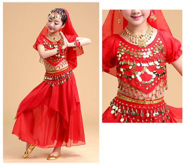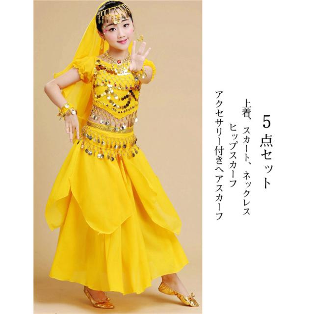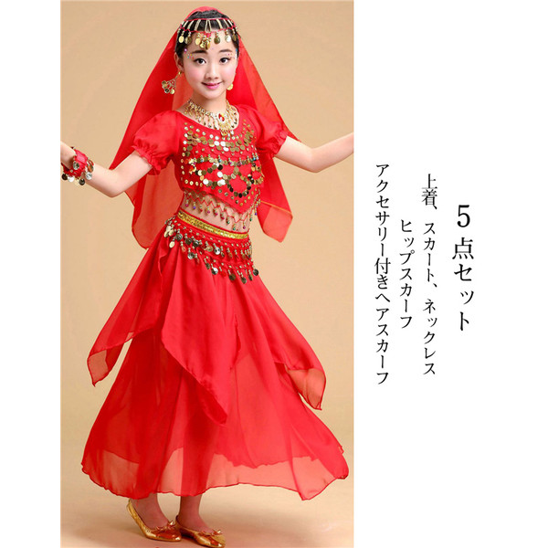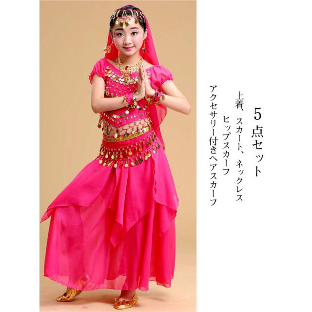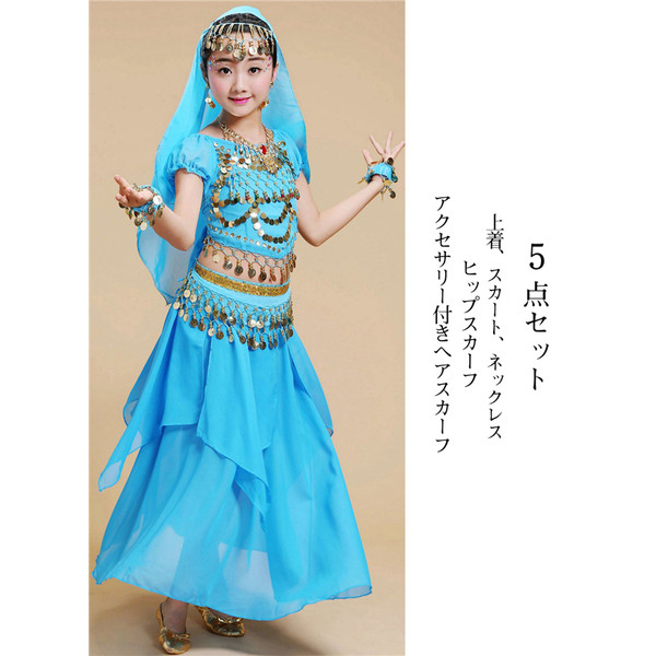 ベリーダンス衣装 ハロウィン 子供用 女の子 コスプレ仮装 アラジンベリーダンス 半袖 社交ダンス衣装 5点 社団演出服 華麗版 民族衣装 ジャスミン風