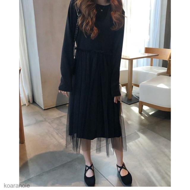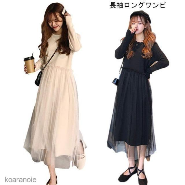 ワンピース 長袖 マキシ丈 レディース ロングワンピ チュールスカート 姫系 女性用 長袖ワンピース マキシワンピース 春秋物 レトロ