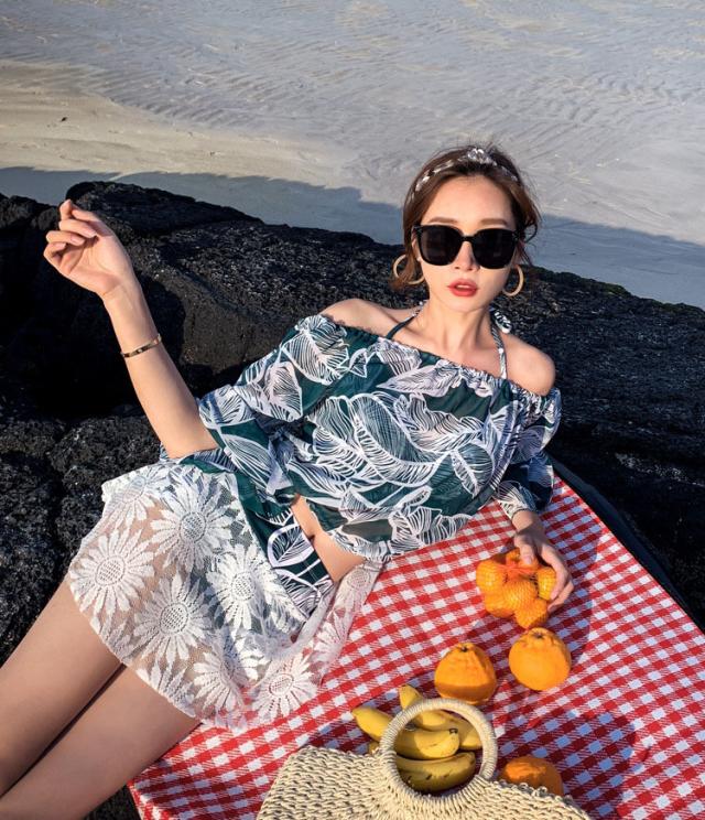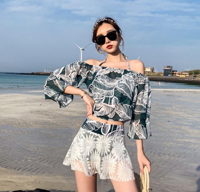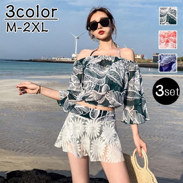 水着 レディース 体型カバー水着 ハイネック ビキニ スカート 3点セット オトナ女子 レース 無地 上下 セクシー パッド付き 20代 30代 盛れる お洒落