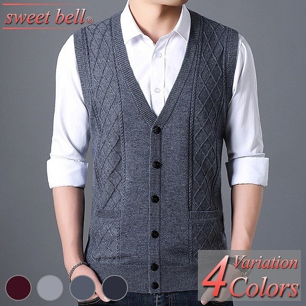 ニットベスト メンズ ベスト ニット 大きいサイズ ジレ カジュアル ビジネス スクール Vネック 丸首 おしゃれ