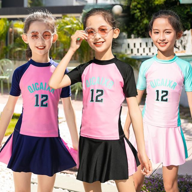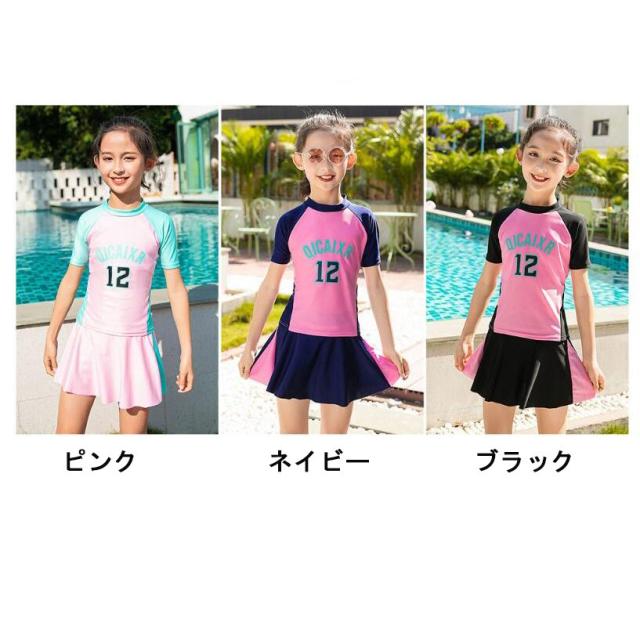 スクール水着 女の子水着 2点セット 競技水着 キッズ ラッシュガード 小学生 中学生 日焼け防止 プール スカート スイミング みずぎ 子ども水着 水泳 おしゃれ