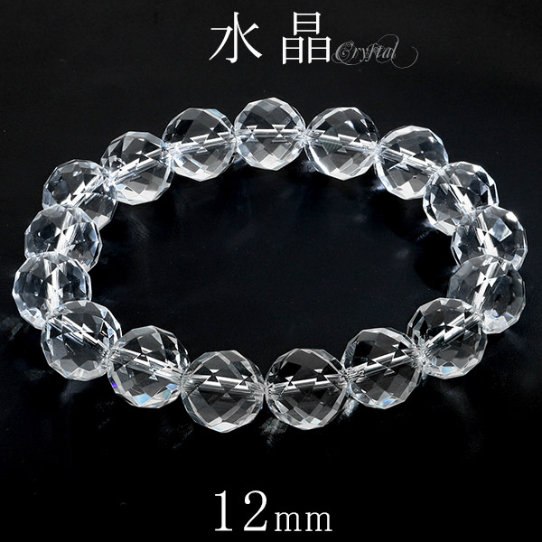 水晶 ブレスレット カット 12mm 17〜19.5cm M〜LL サイズ