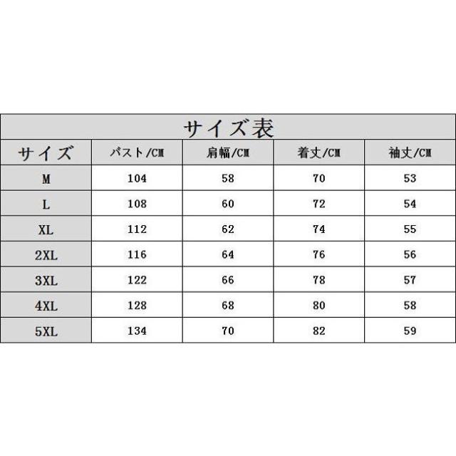 | サイズについての説明 | サイズ:M-5XL ☆ゆったりシルエットなので楽に着て頂けます ☆詳しサイズ表は写真を参考ください。 |